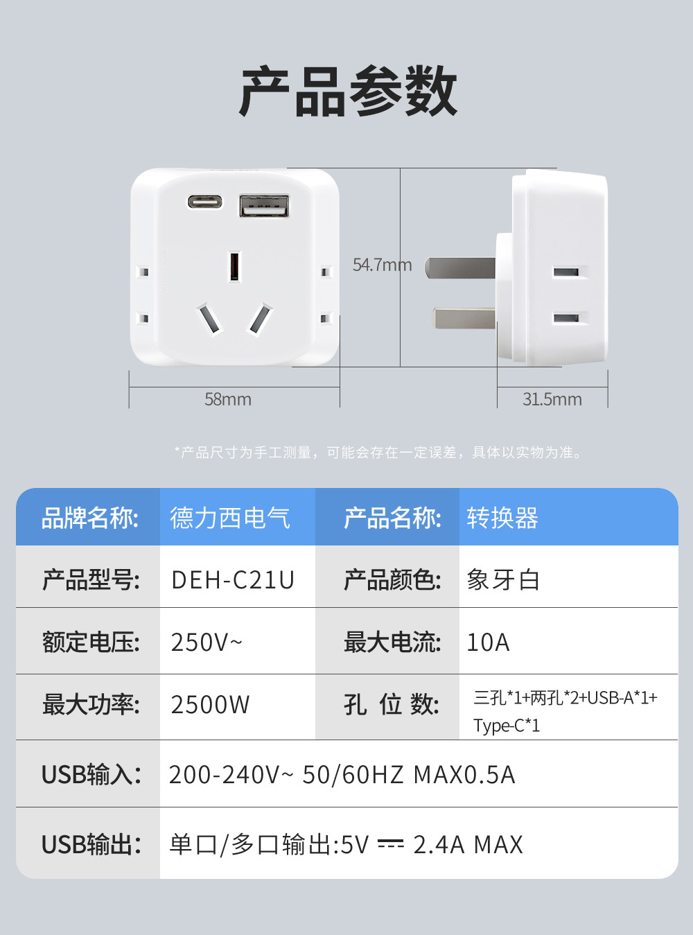 徳力西両足プラグ二極変換器一回転六電源変換コンセントミニ二ソケット拡張コンセント