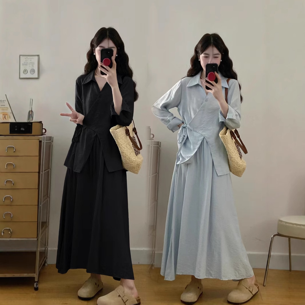 大きいサイズの新しい中国式のスーツの女性の夏の薄いタイプのフランスは長袖の日焼け止めのシャツの半身のスカートの2つのセットを持ちます。