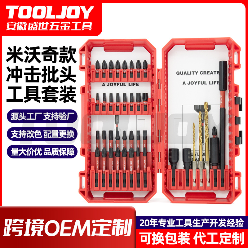 米沃奇款麻花钻钻头工具套装logo亚马逊55pc喷砂冲击批头工具组套