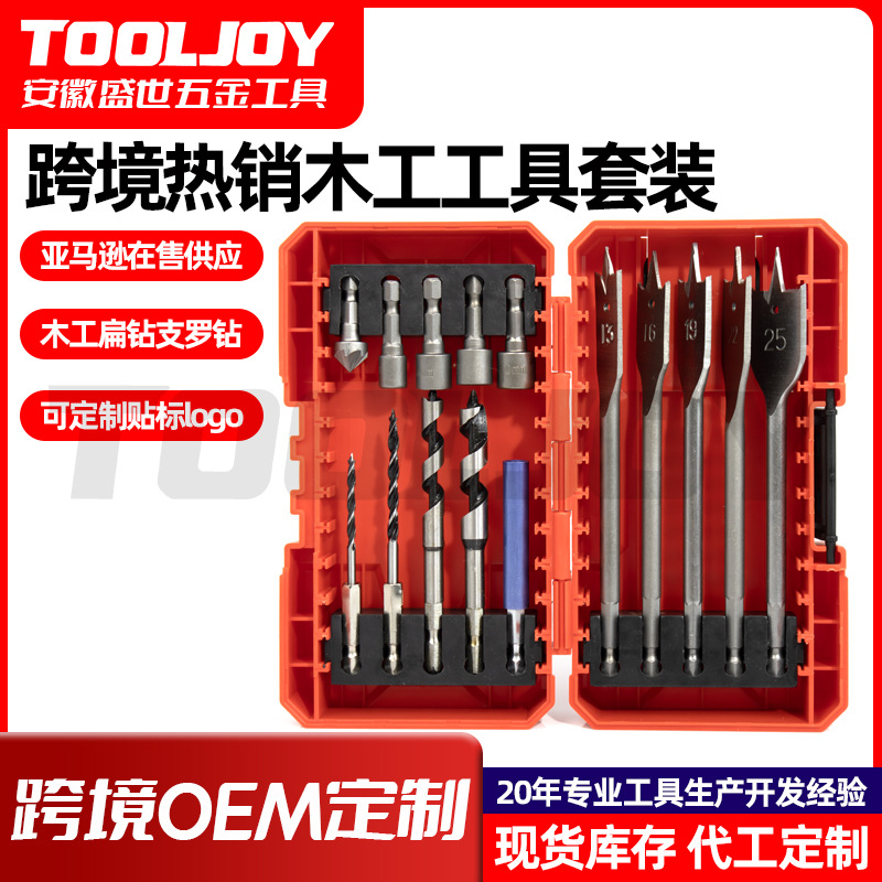 跨境热销10pc木工工具组套木板钻孔扩孔木工扁钻头套筒批头套装