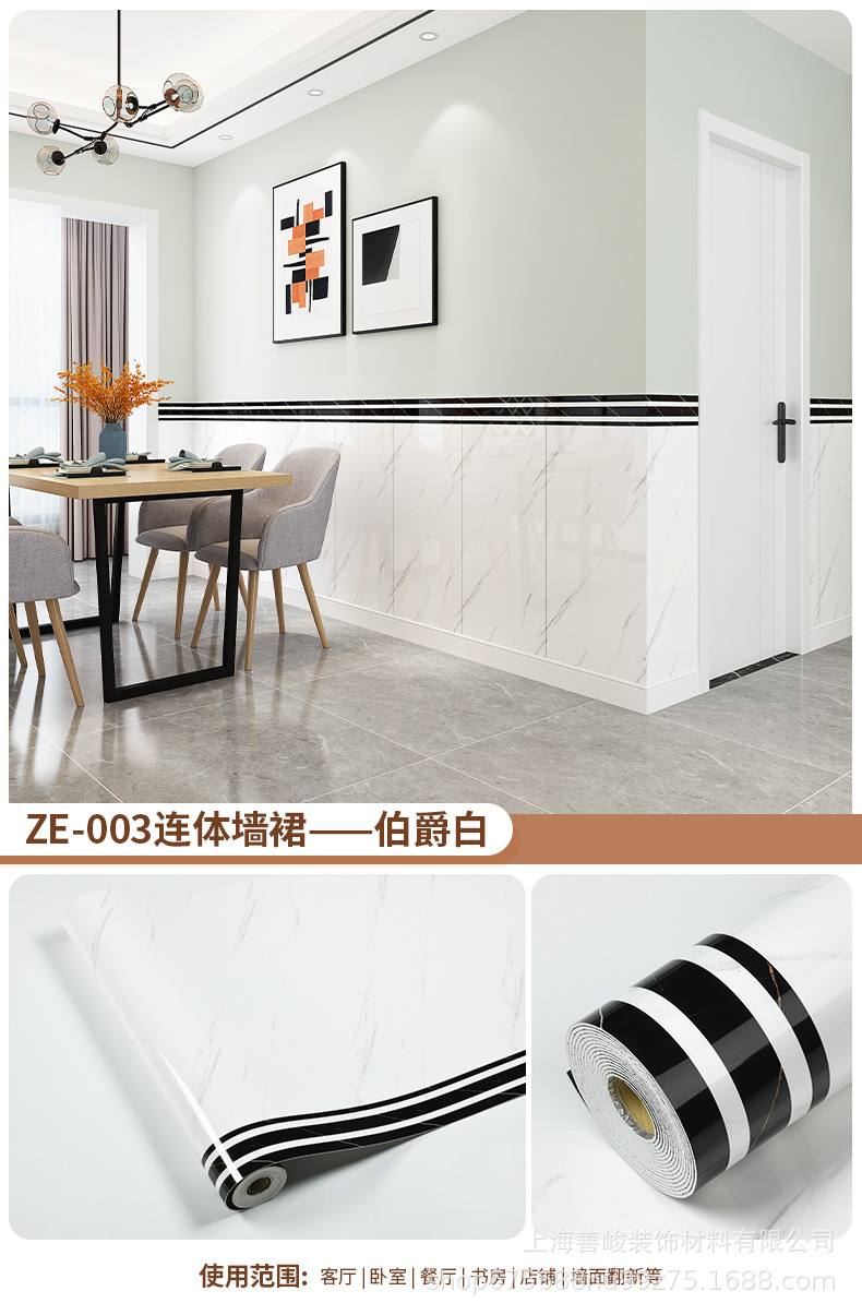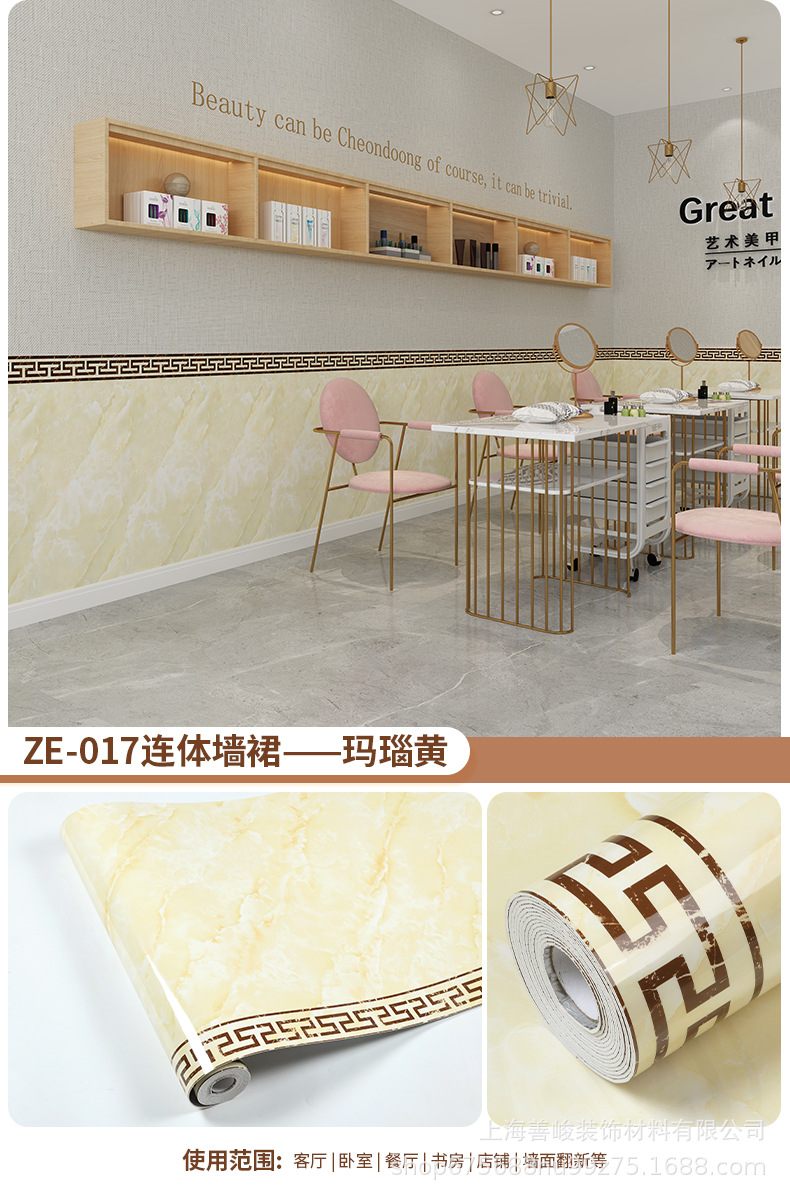 墙纸自粘墙围墙裙壁纸仿瓷砖墙贴大理石墙面翻新贴纸新中式风格