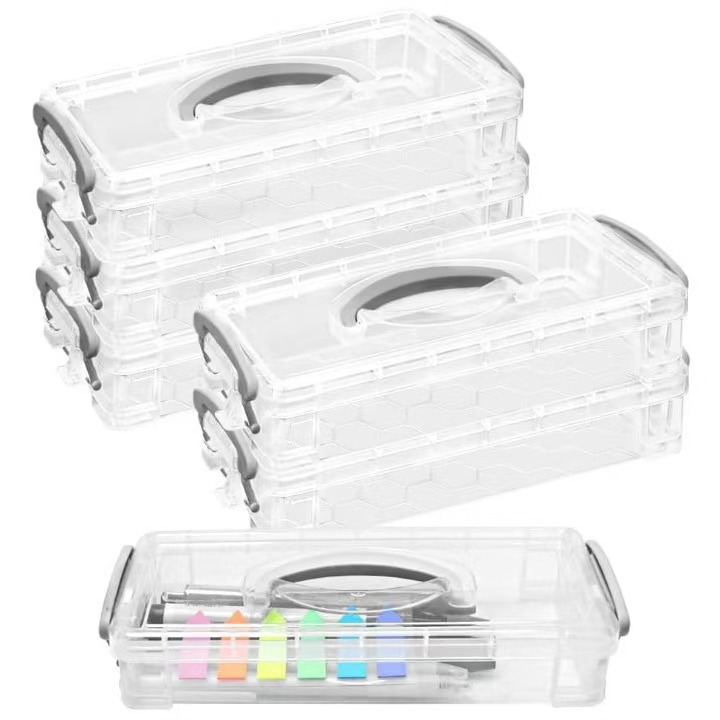 6段手提げ色铅笔絵筆水彩ペンストレージボックススタッキング可分解文房具収纳ボックスプラスチックボックス