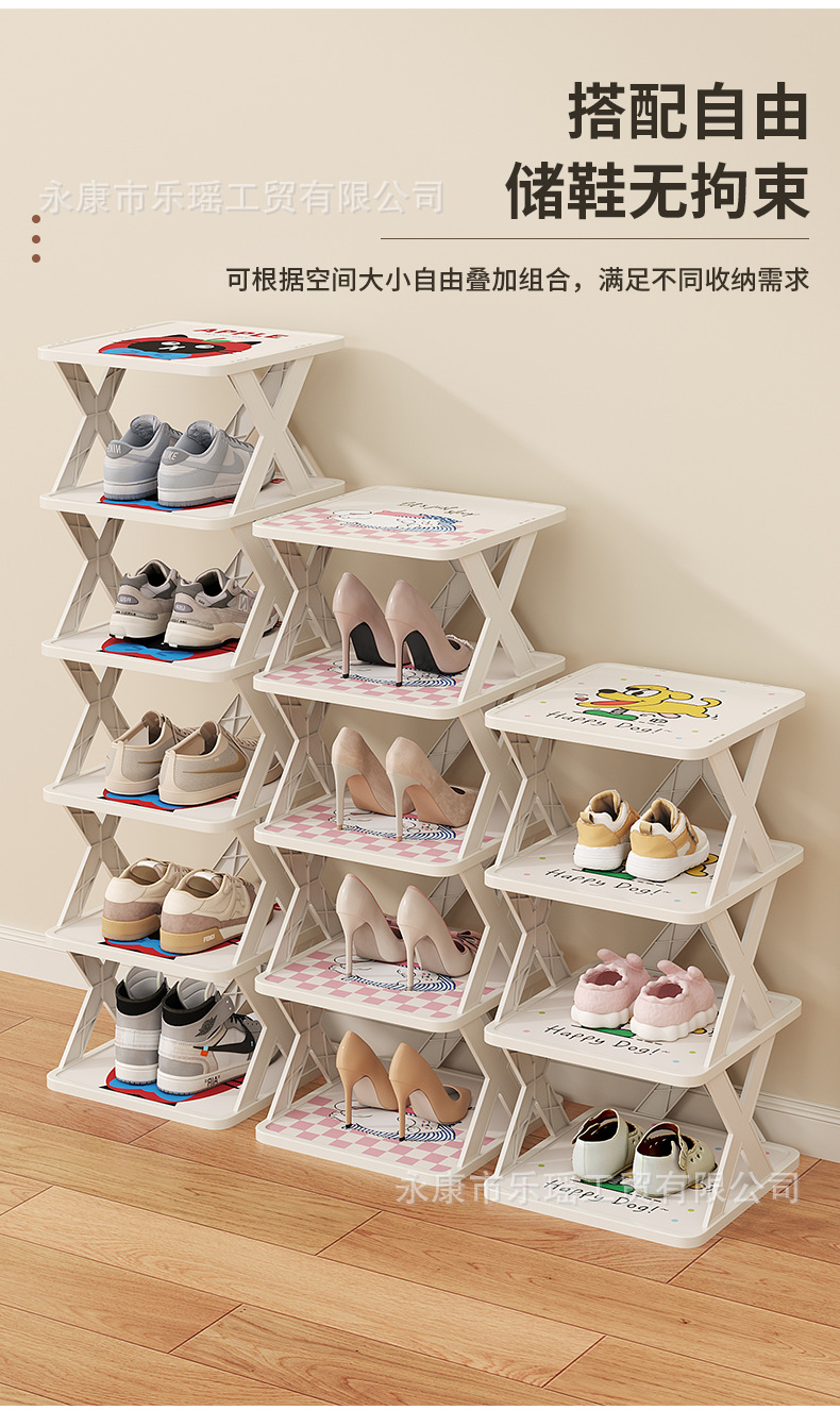 靴棚、狭い玄関用、多層式簡易靴箱、室内用、ドーパミン風、おしゃれな靴収納棚、寮用小型