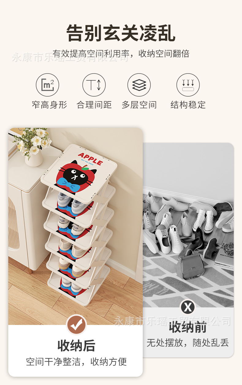 シンプルな靴棚、家庭用省スペース、一人用DTY玄関狭い靴棚、多機能プラスチック製多層寮靴箱