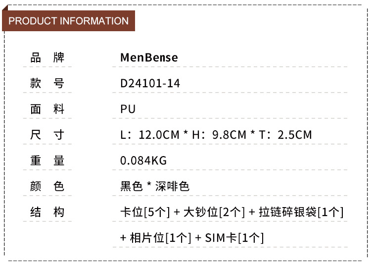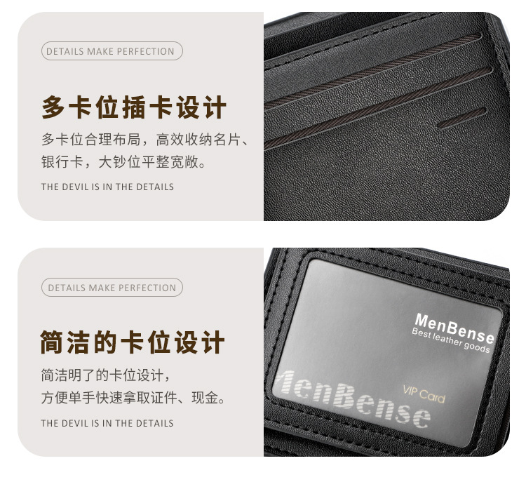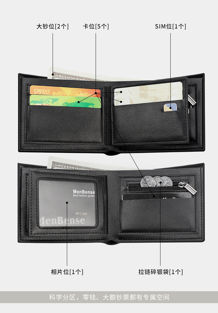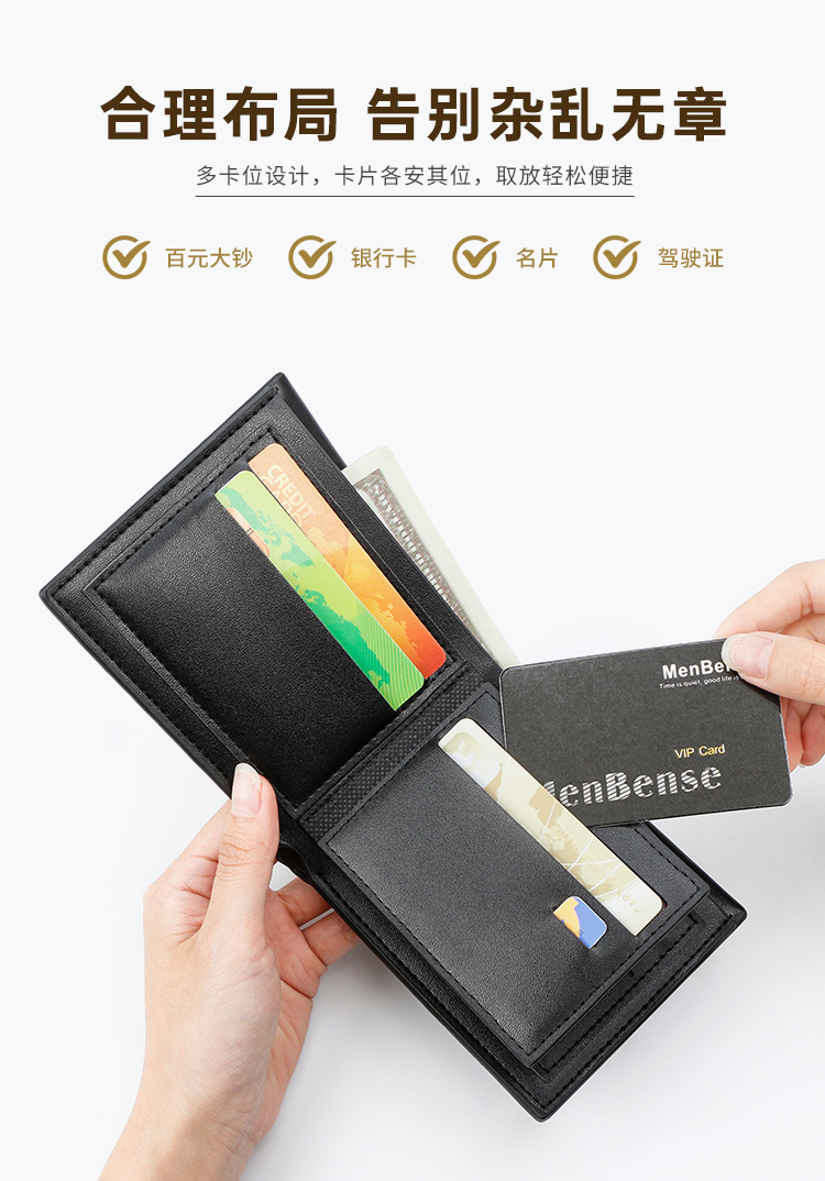 Menbense新型男性財布ショート多機能ファッションカジュアル鉄サイドカード財布メーカー直供
