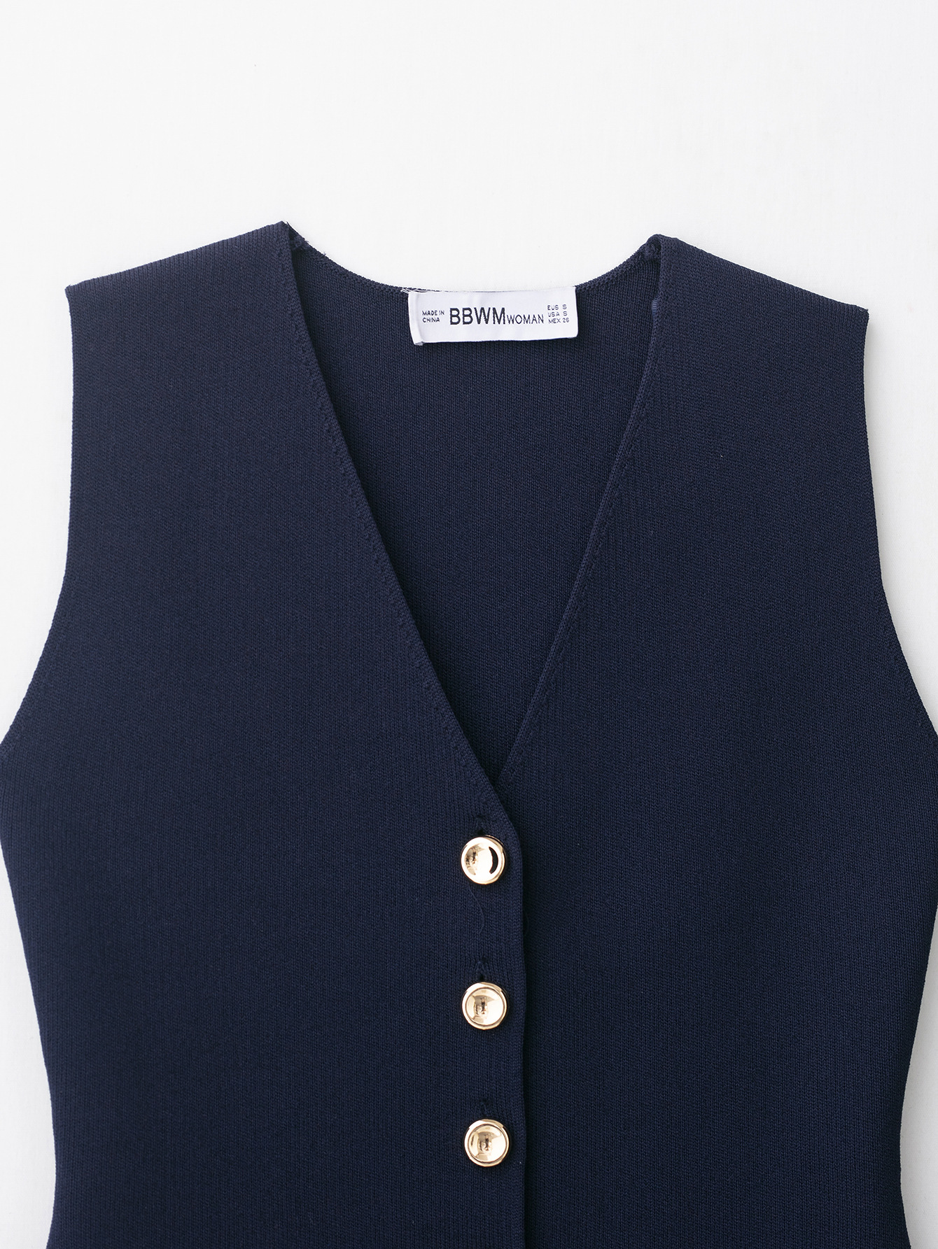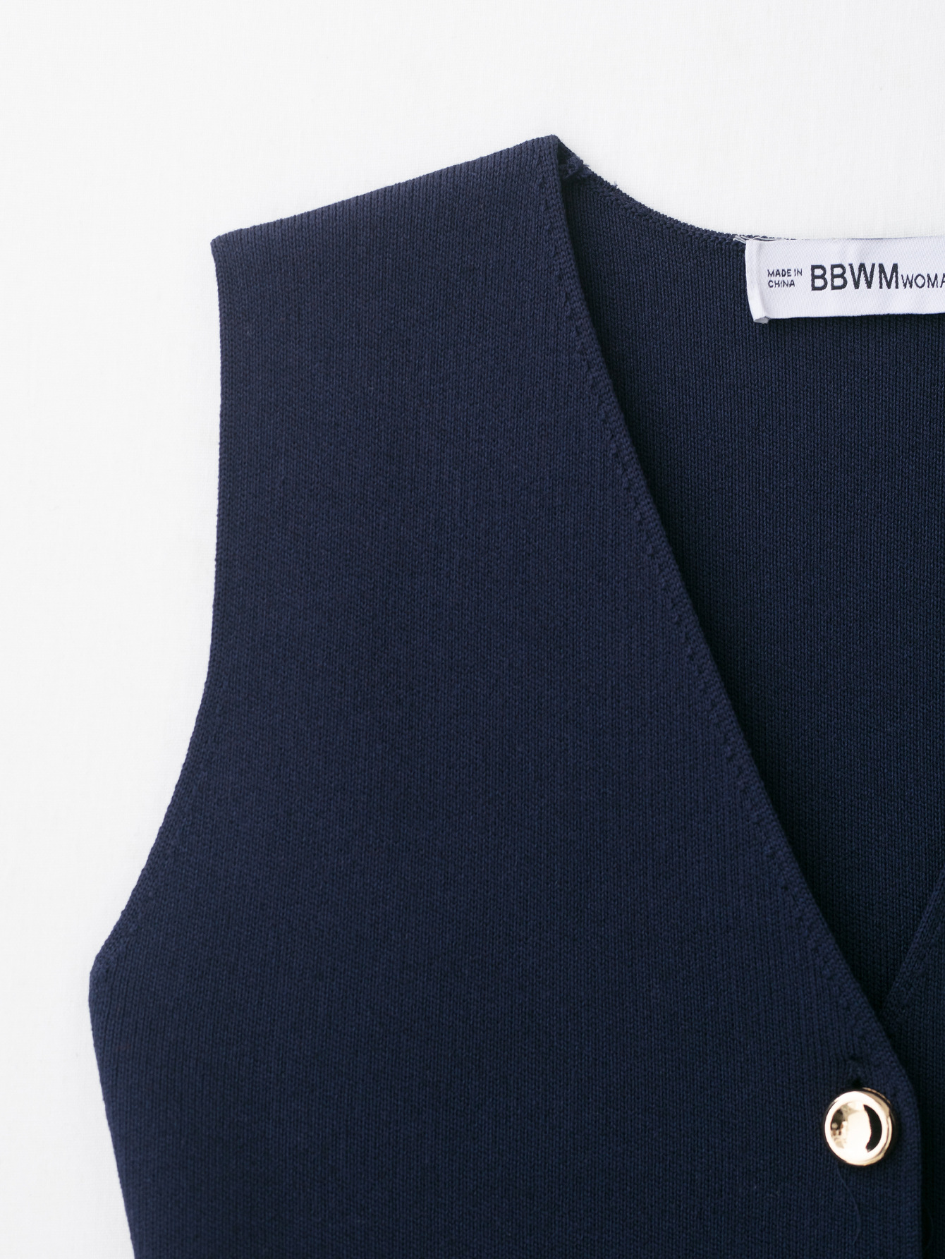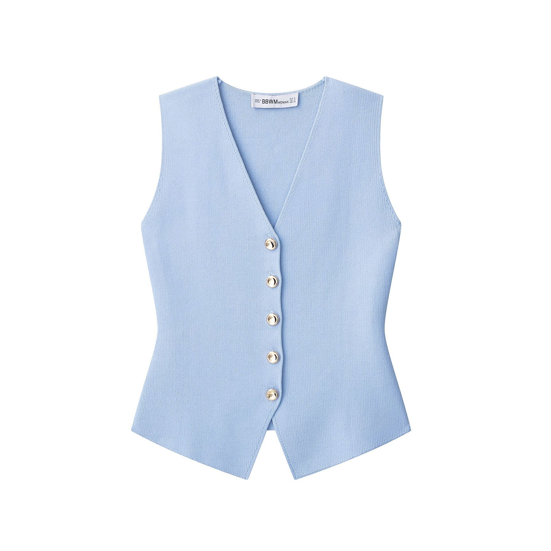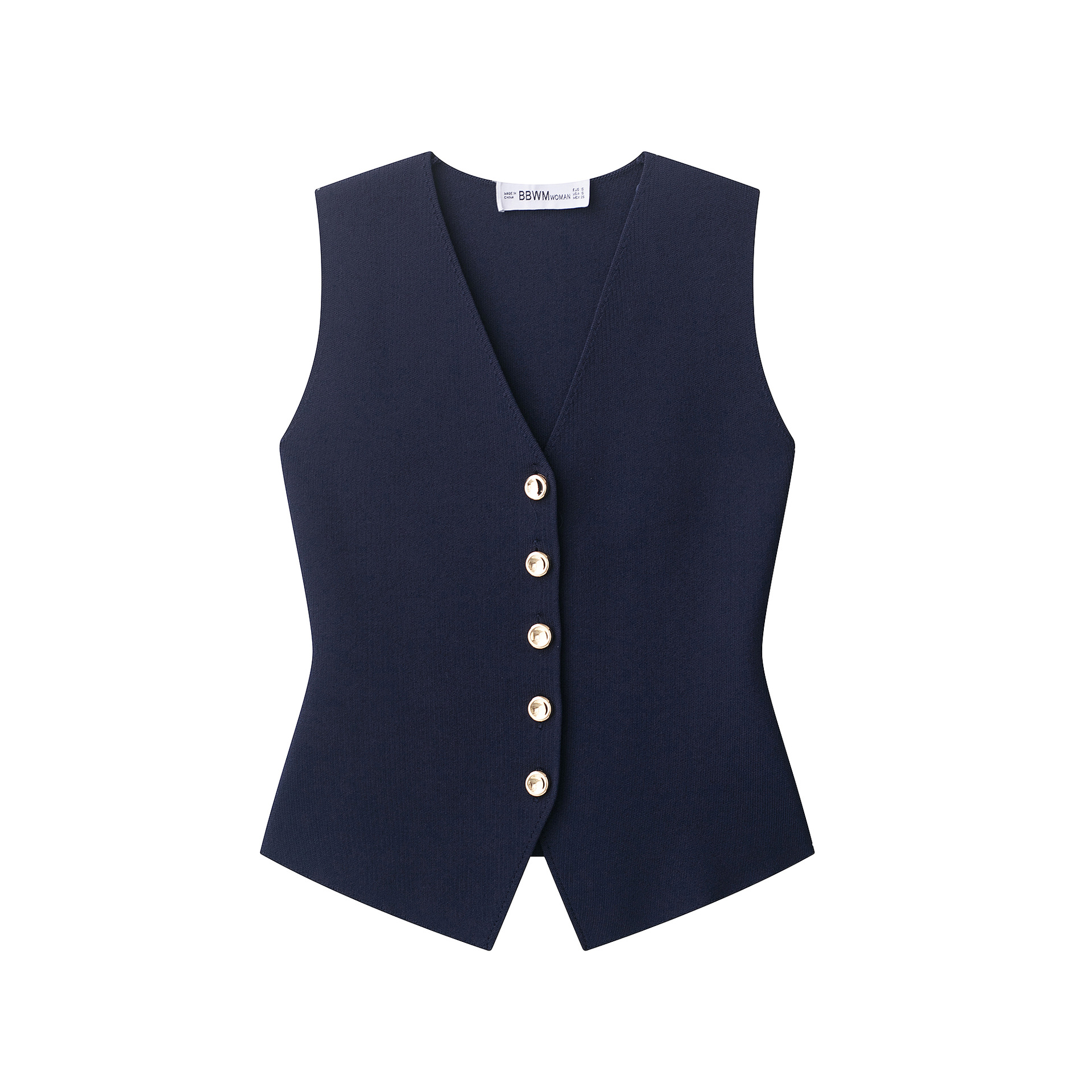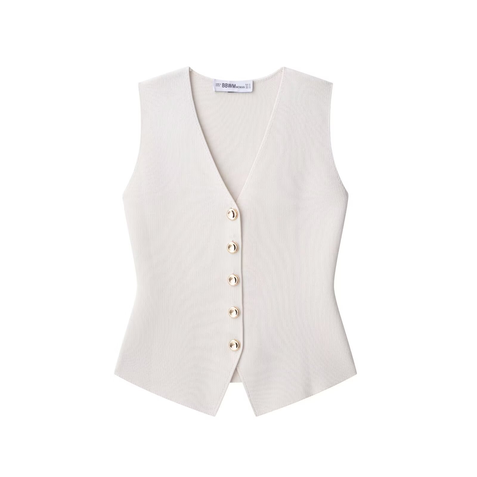 2025年春新作 欧米風万能カジュアル無地ベルト付きビーズ装飾粗織ベスト(越境貿易婦人服)