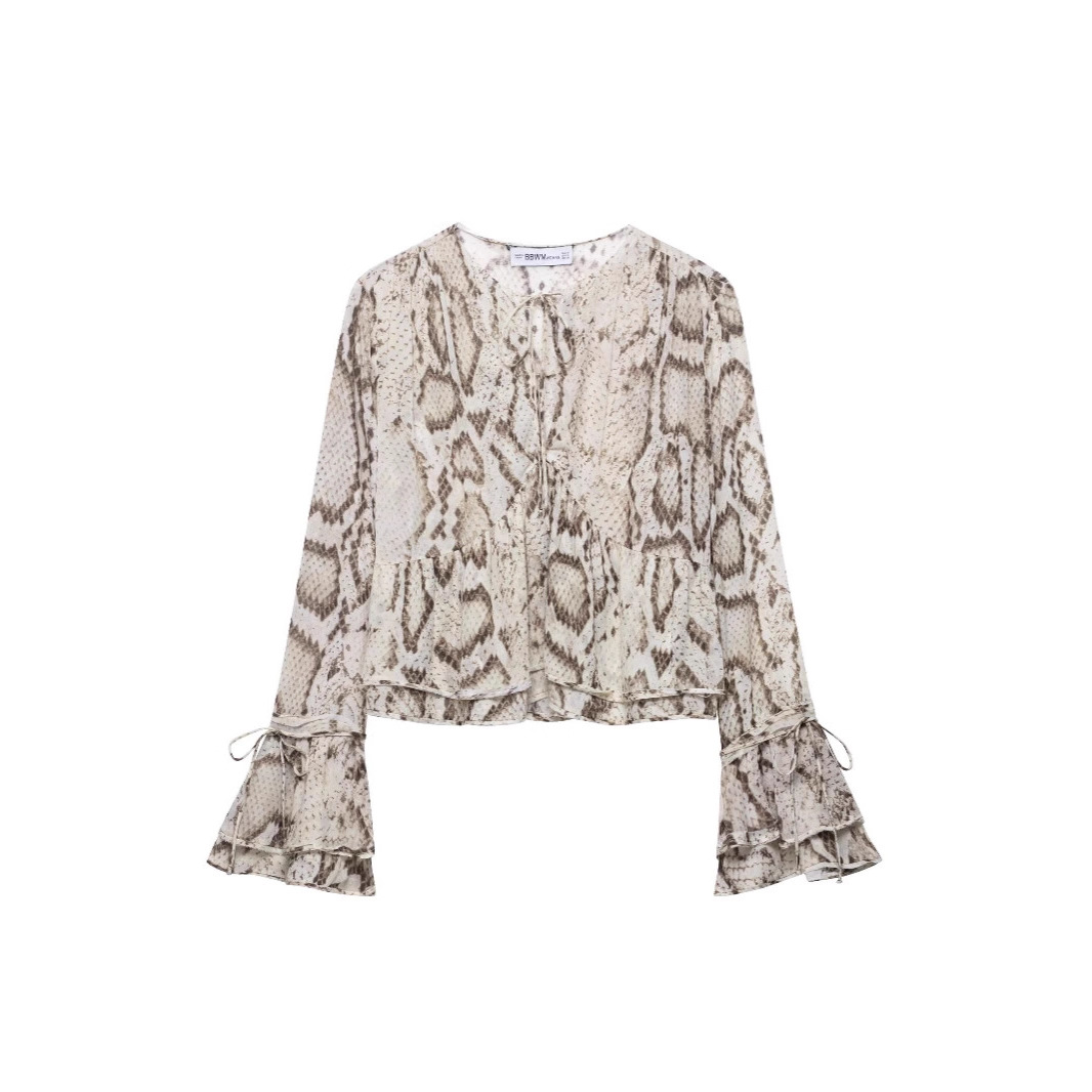 跨境外贸女装2025夏季新款欧美系百搭休闲时尚动物纹印花长袖衬衫