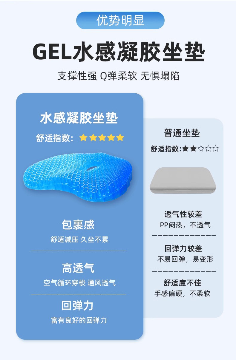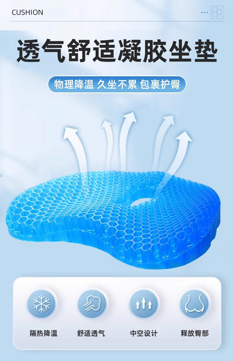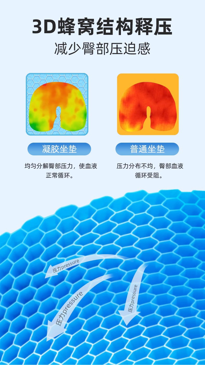 轮椅防褥疮坐垫防屁股痛蜂窝凝胶坐垫卧床老人专用屁垫痔疮垫压疮