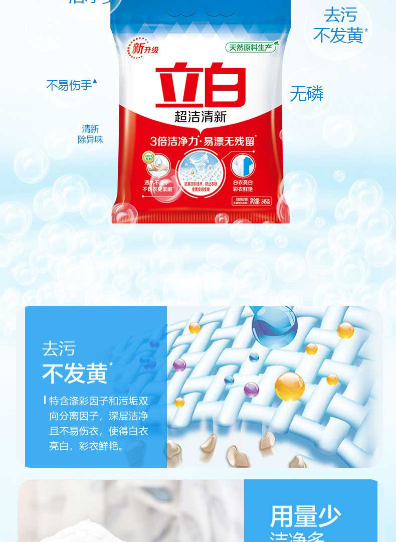 立白超洁清新洗衣粉洁净去渍易漂无残留无磷型家用实惠装正品批发