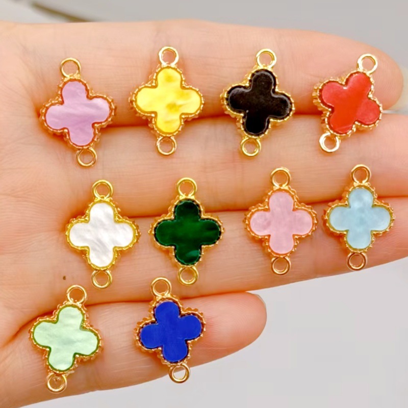 韓国版四つ葉のクローバー diy ダブルペンダント合金象嵌アクセサリーペンダントイヤリングブレスレット手織り小さなペンダント卸売