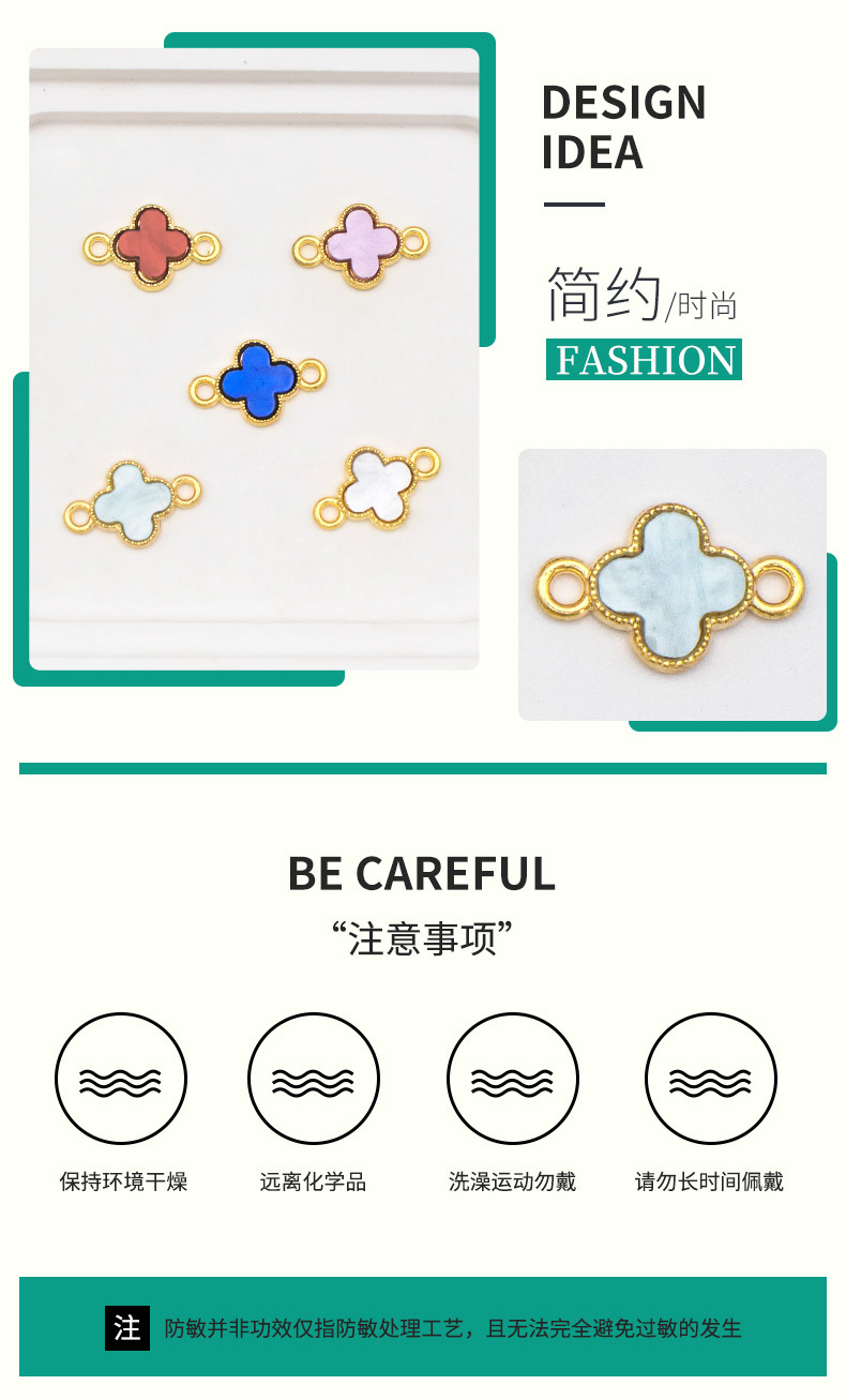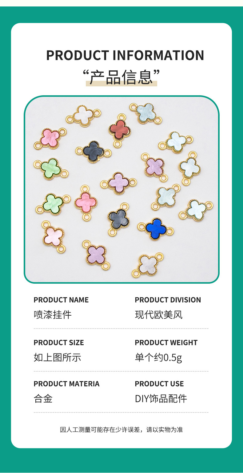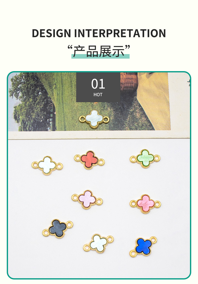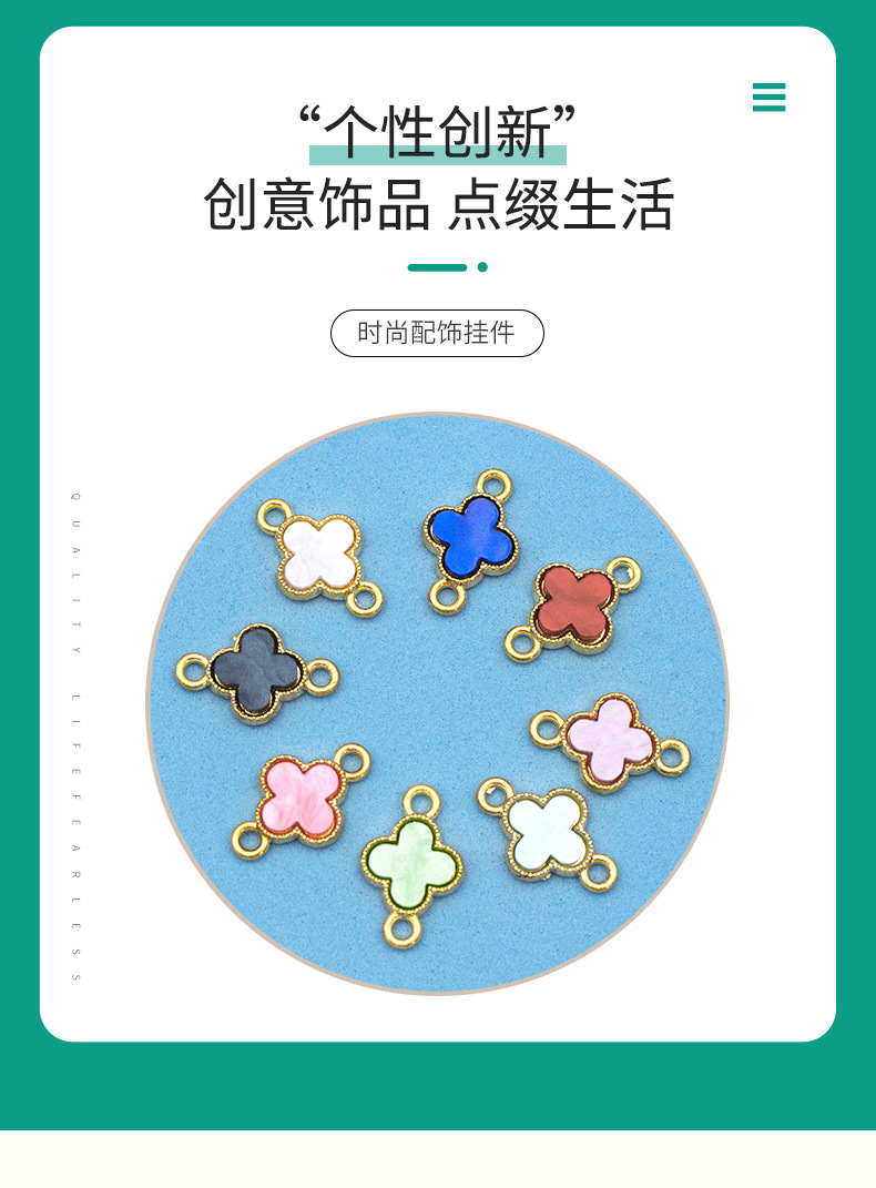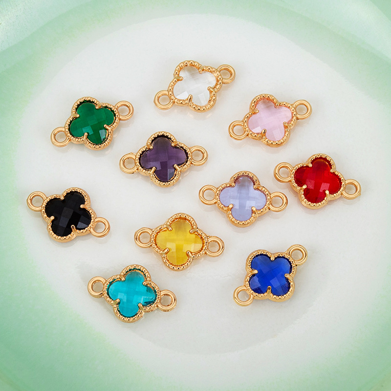 新款创意饰品diy配件卡通迷你四叶草玻璃合金项链手链吊坠挂件批