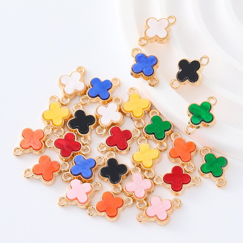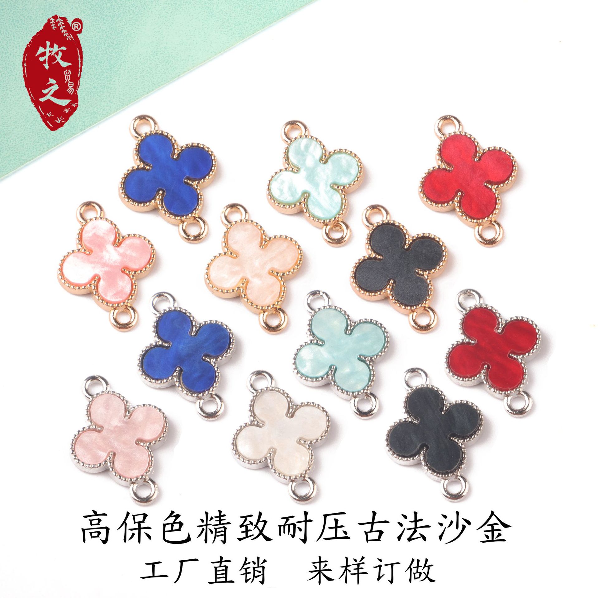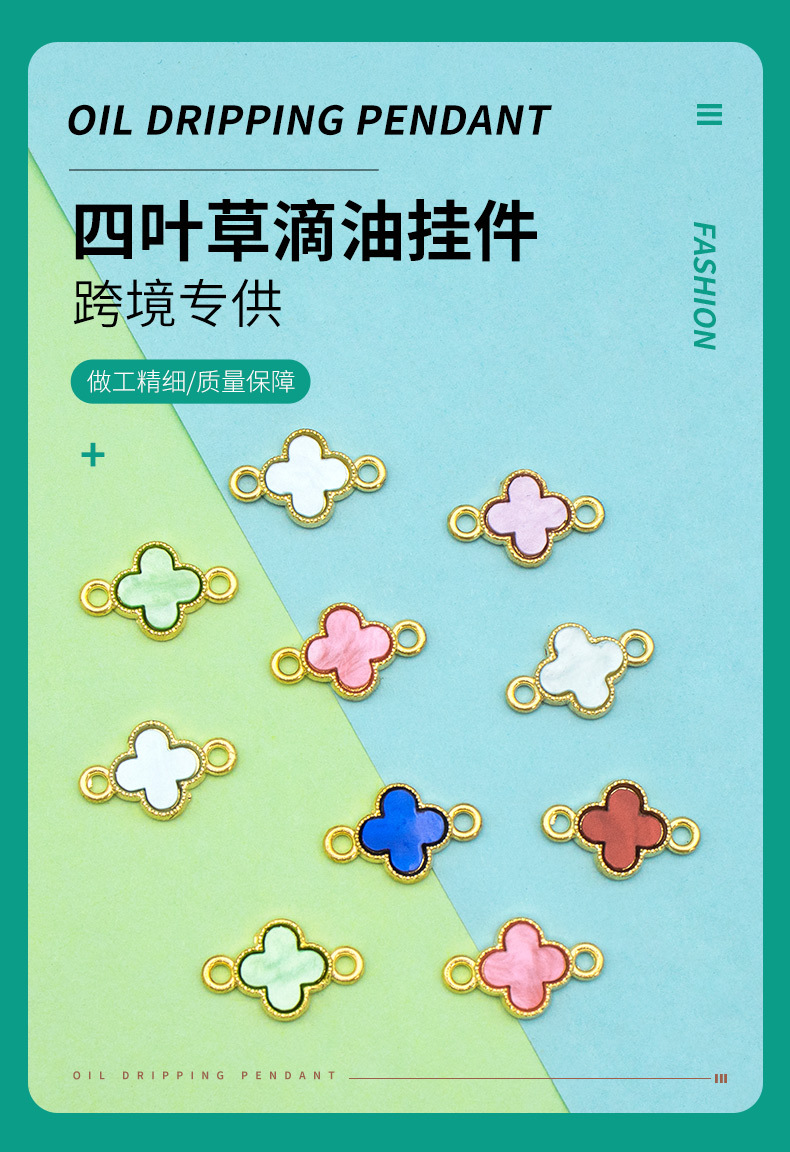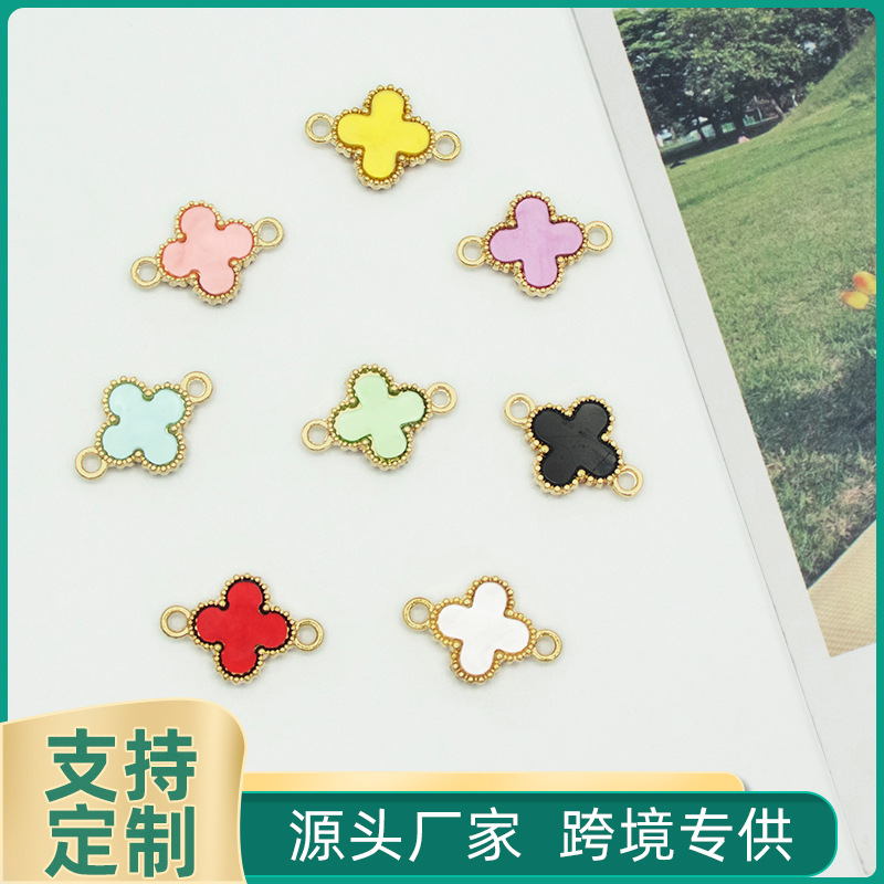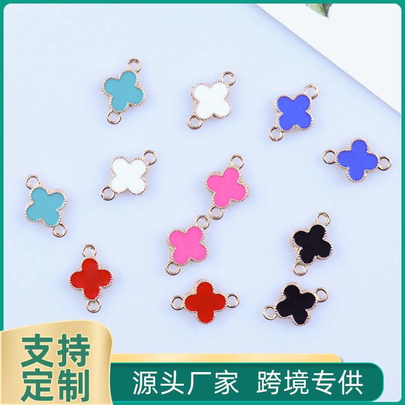韓国風ダブルクローバー油滴ペンダント合金イヤリングブレスレットDIYアクセサリー手編み越境人気商品