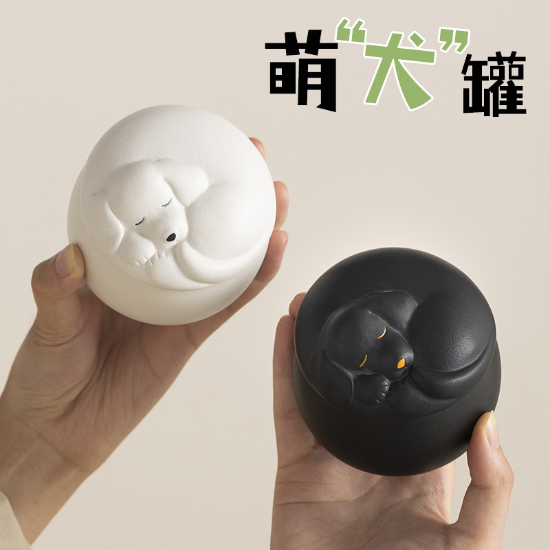 かわいい眠っている犬セラミック缶粗い陶器茶缶密封缶フレグランスパウダーボトル防湿保存缶ポータブル旅行茶倉庫