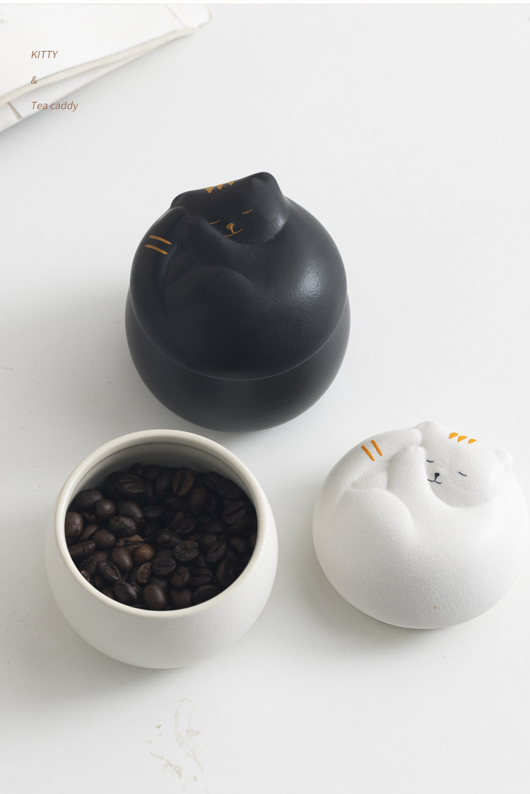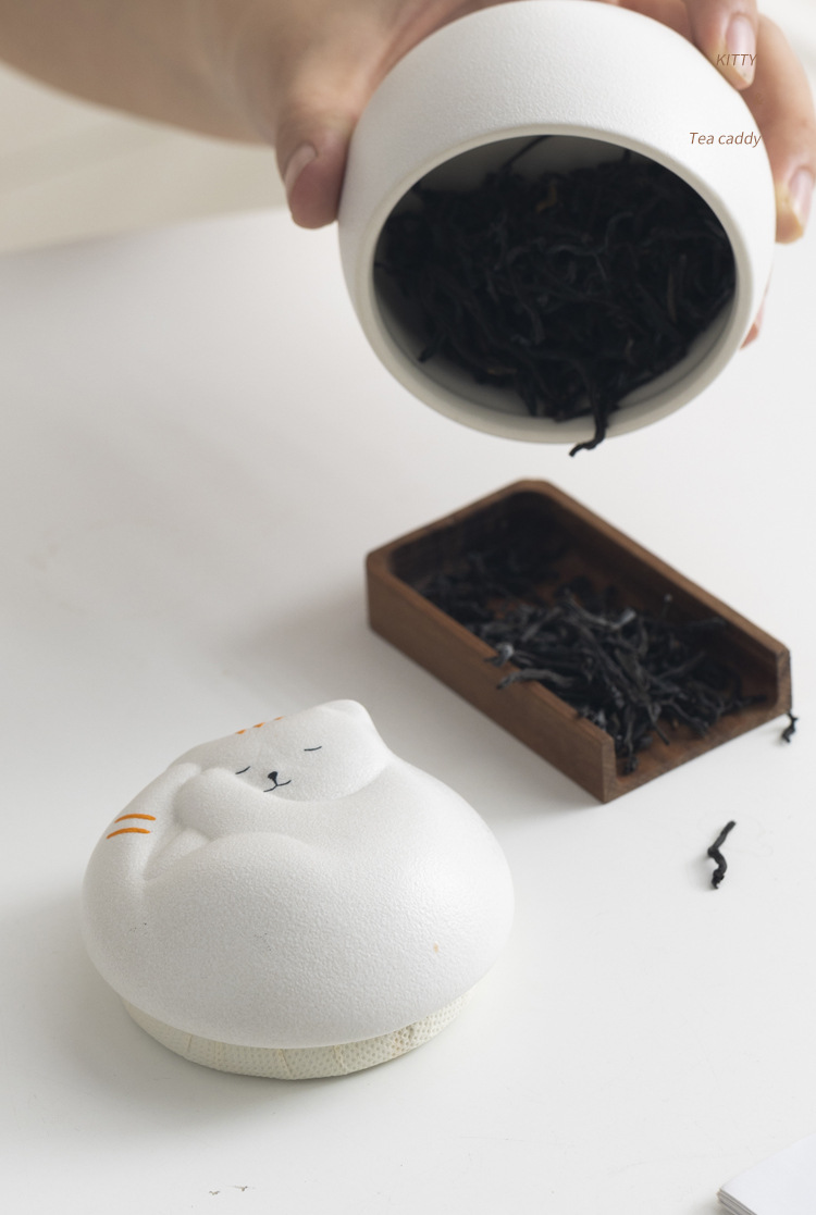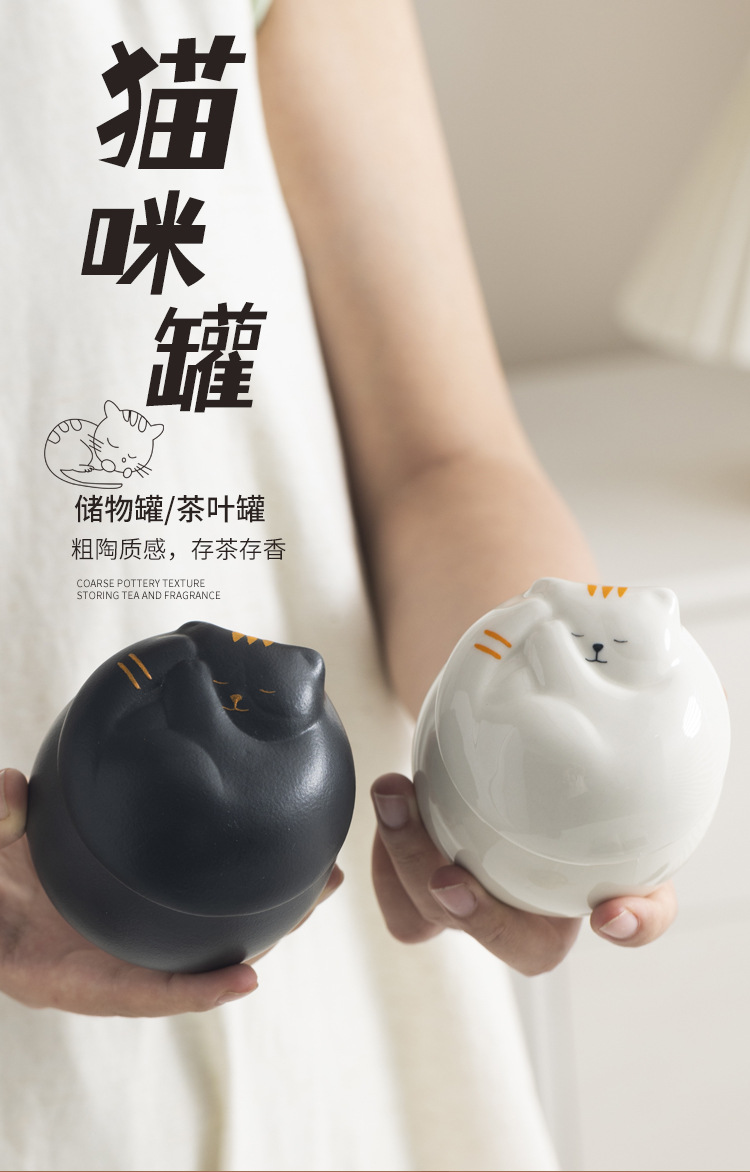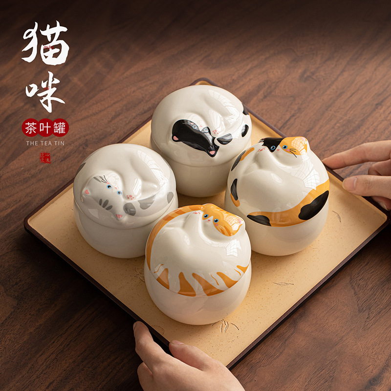 萌え猫茶葉缶粗陶密封貯蔵缶ポータブル旅行茶倉ペット缶密封缶陶磁器缶間食
