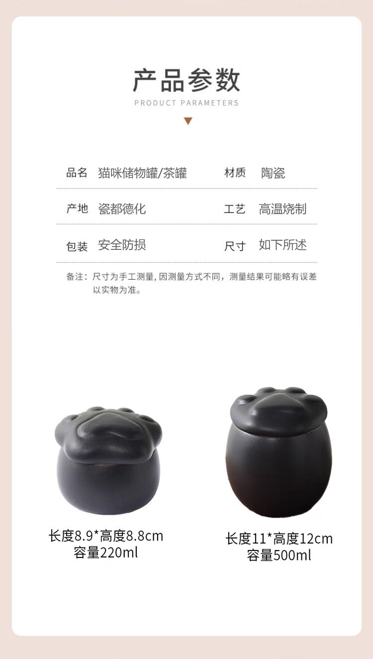 创意爱心爪印陶瓷罐密封罐无纺布防潮储物瓶香粉罐茶叶罐茶仓直罐