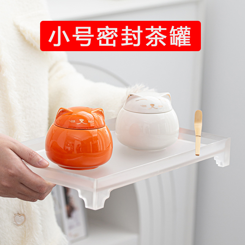 创意招财猫陶瓷茶叶罐迷你可爱密封便携茶叶罐储存罐防潮茶罐子