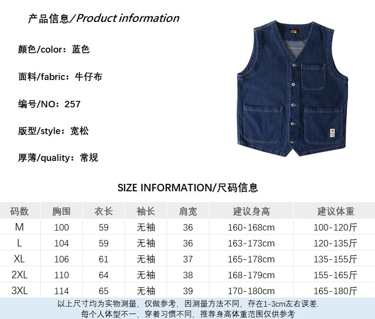 日系复古多口袋工装牛仔马甲男女新款休闲无袖叠穿上衣宽松外套潮
