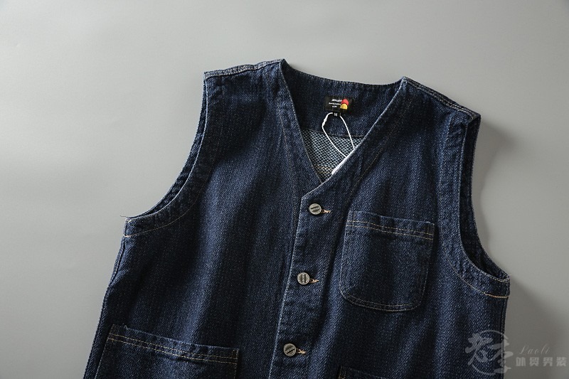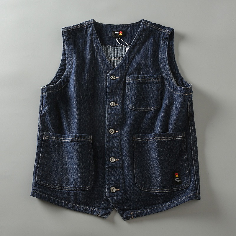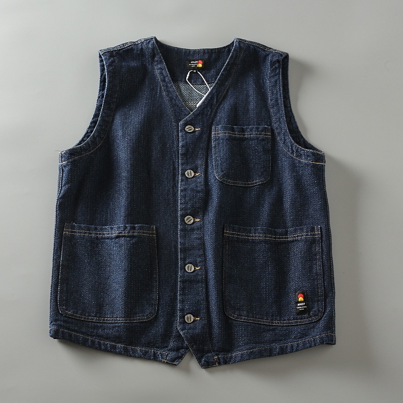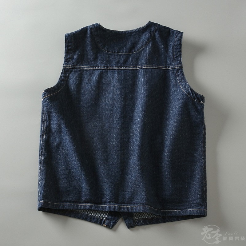 日系复古男士休闲无袖多口袋工装牛仔叠穿马甲背心坎肩外套潮