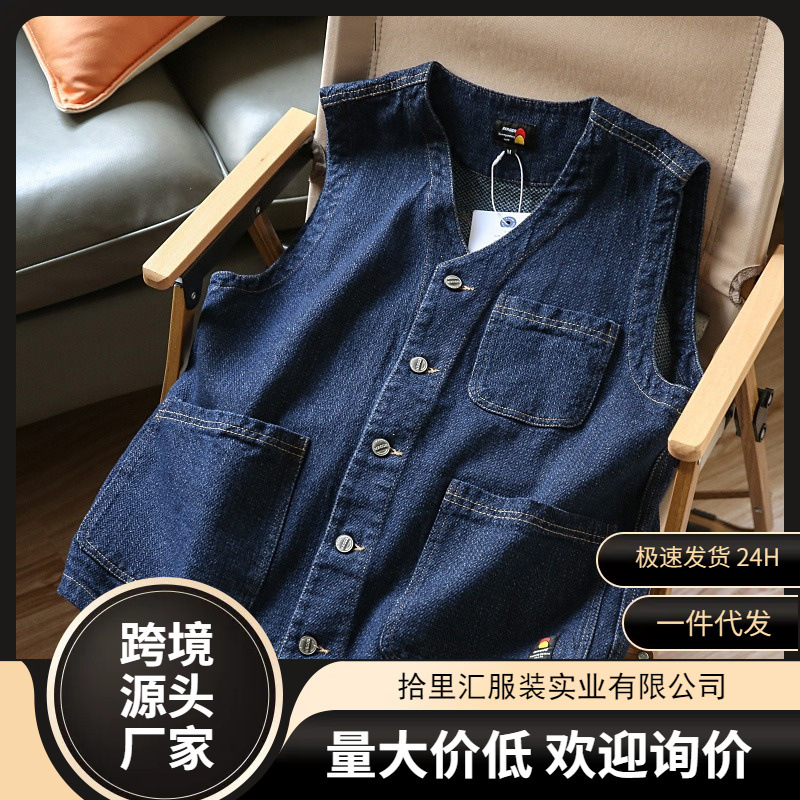 春夏の新作トレンディなデニムベストジャケットメンズファッショントレンディなルーズベストメンズノースリーブワークジャケット