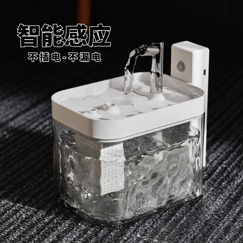 猫用ウォーターディスペンサー、プラグなし、ワイヤレス誘導ペット飲料水、子猫と子犬用の自動流れるスマート自動ウォーターディスペンサー