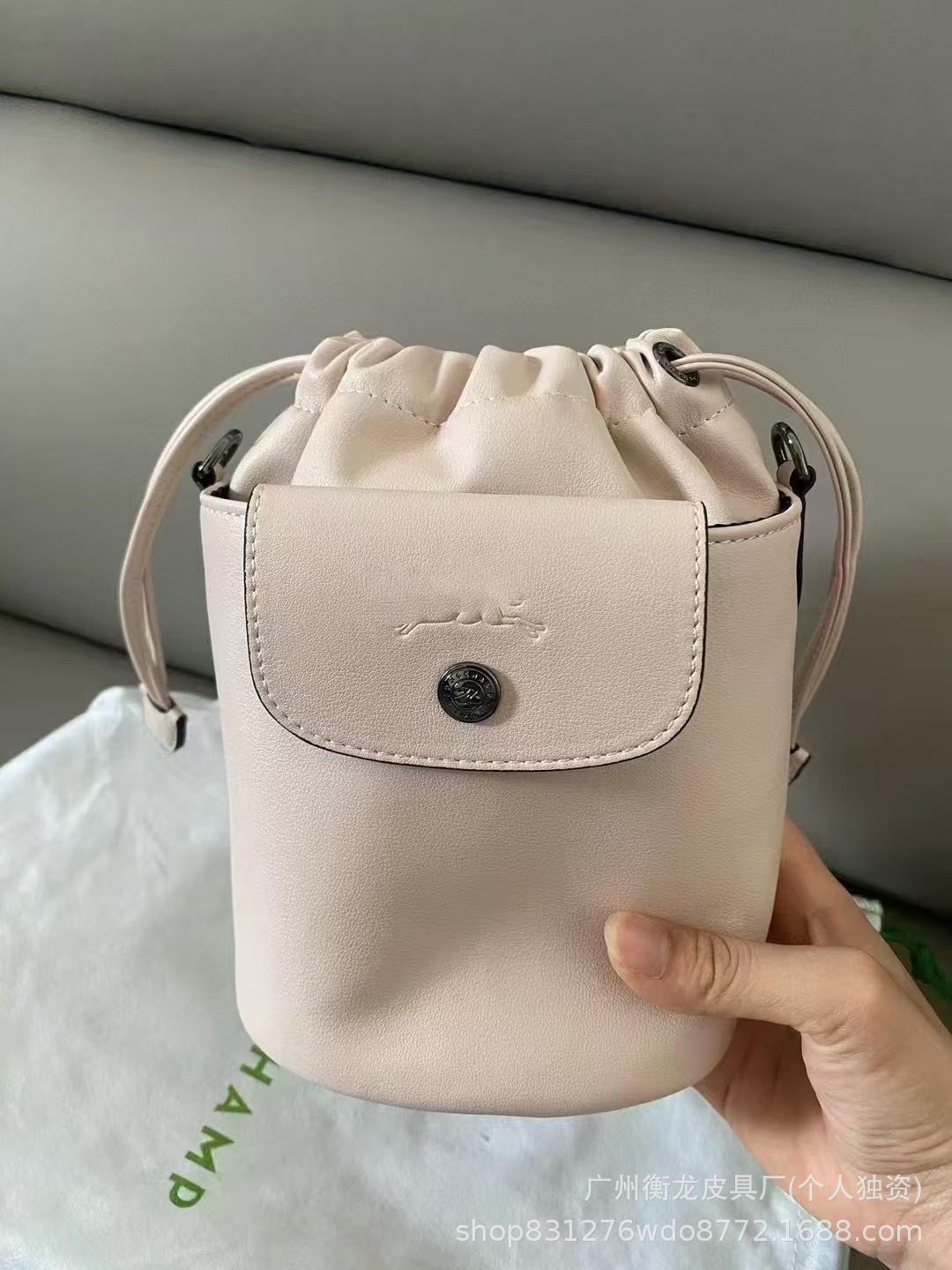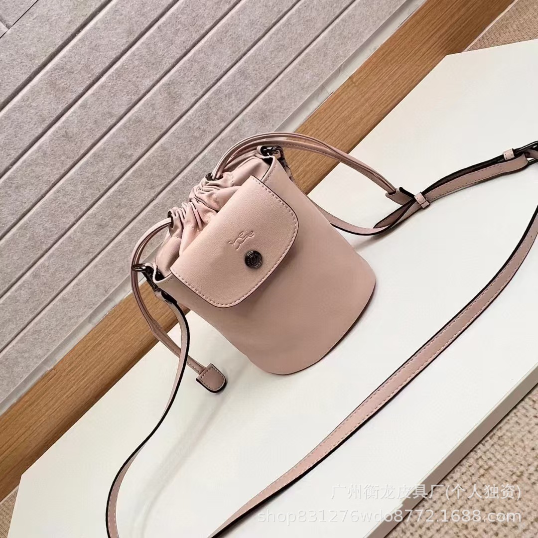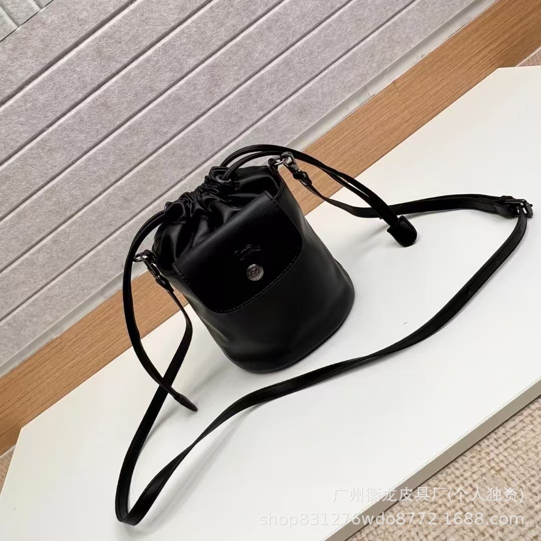 フランス Longxiang 2025 新しいトップ牛革スモールバケツ王曼宇と同じスタイルの小さな福袋バッグシングルショルダークロスボディバッグ