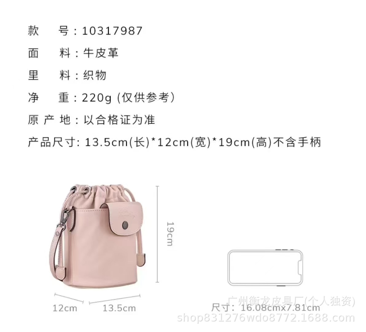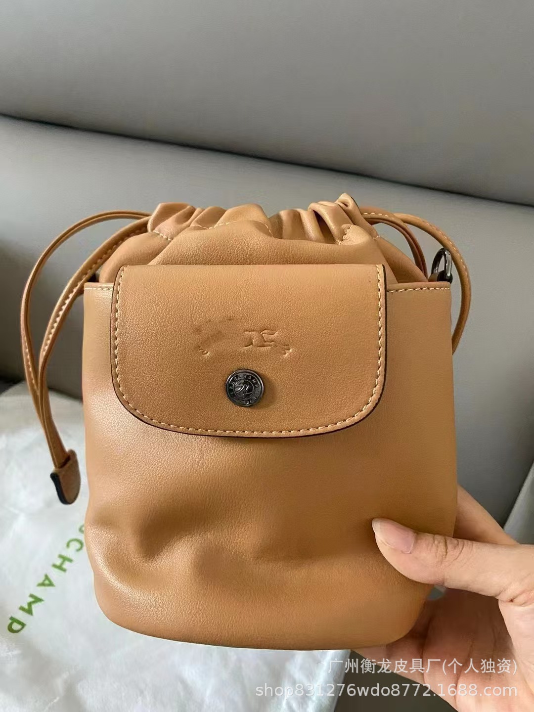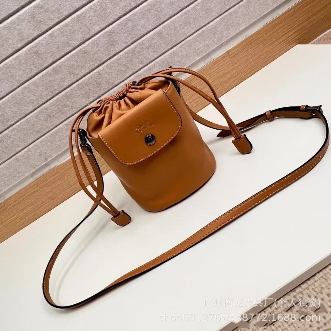 フランス Longxiang 2025 新しいトップ牛革スモールバケツ王曼宇と同じスタイルの小さな福袋バッグシングルショルダークロスボディバッグ