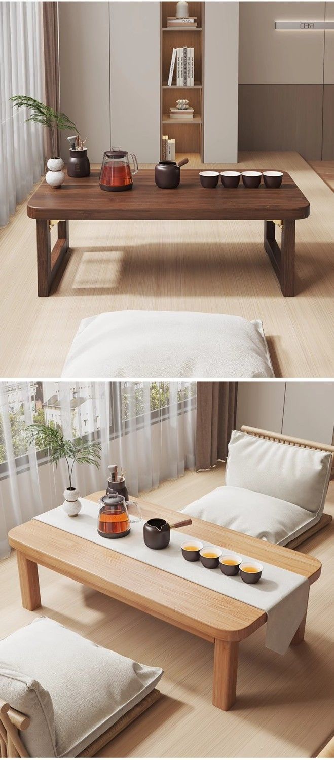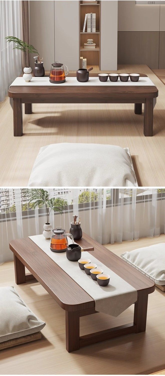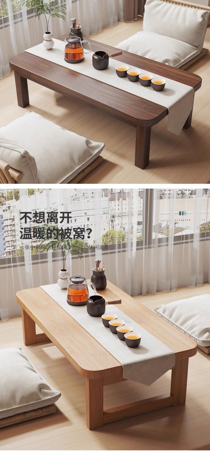 窓のオンドルのいくつかの小さなテーブルが現代的でシンプルな畳の茶卓寝室の家庭用ベッドの上のテーブルが低いテーブルのオンドルのテーブルに座っている