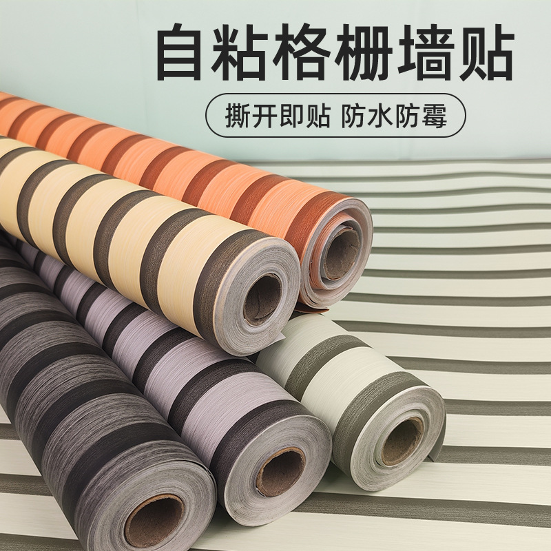 格栅板墙贴自粘3d立体客厅电视背景墙仿木装饰板木纹贴纸防水防潮