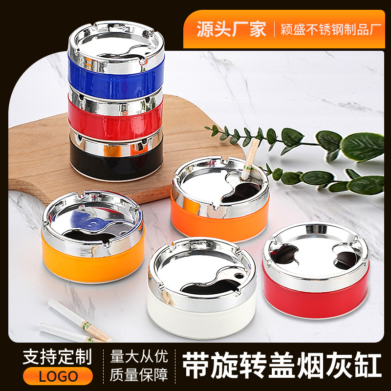 カラフルなカバー付き回転ステンレス鋼灰皿、創造的な個性、家庭用商業インターネットカフェ印刷、カスタマイズされたロゴギフト