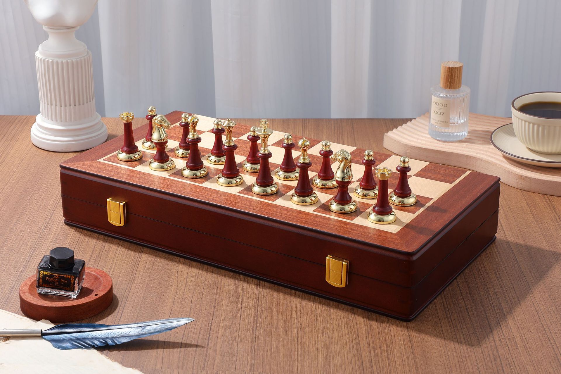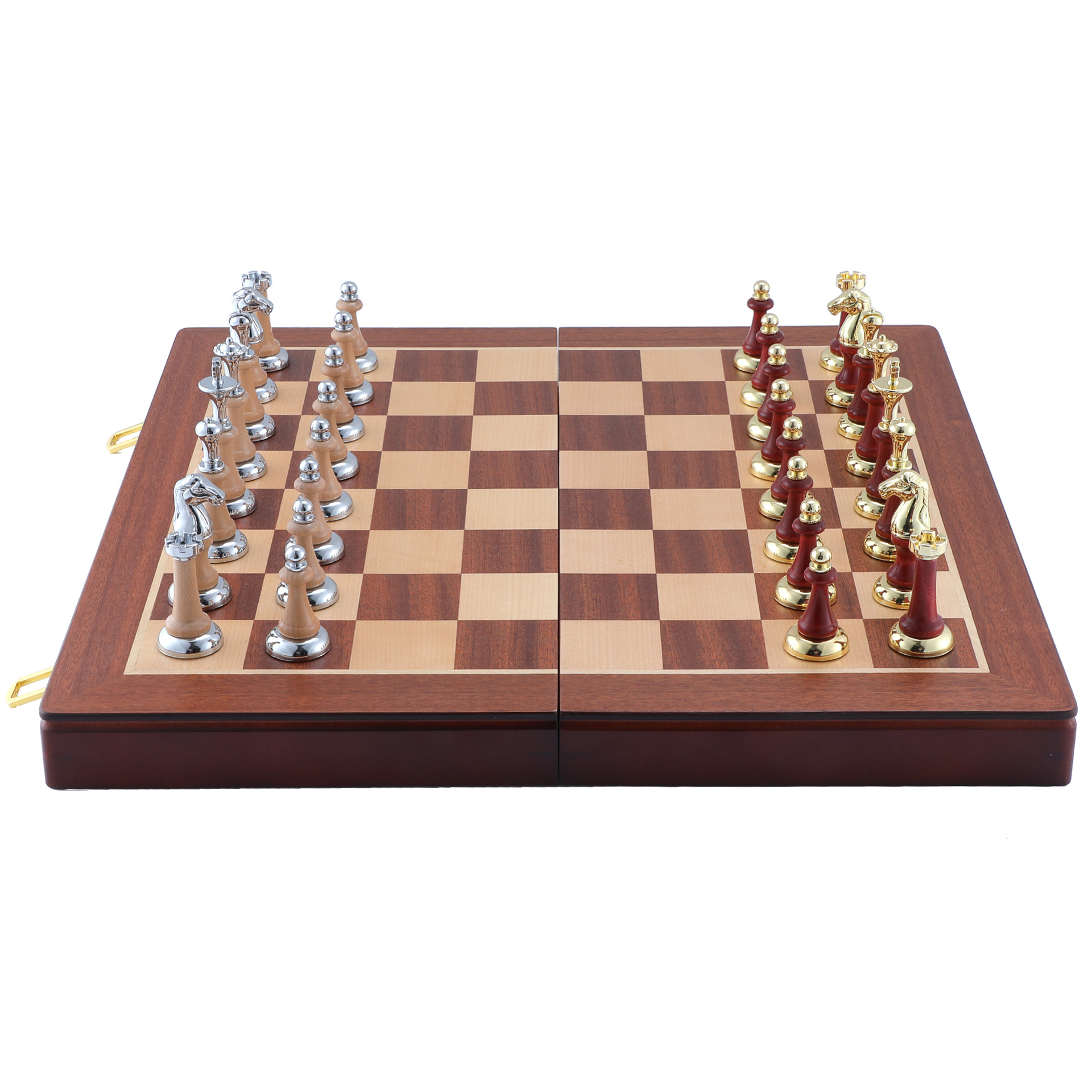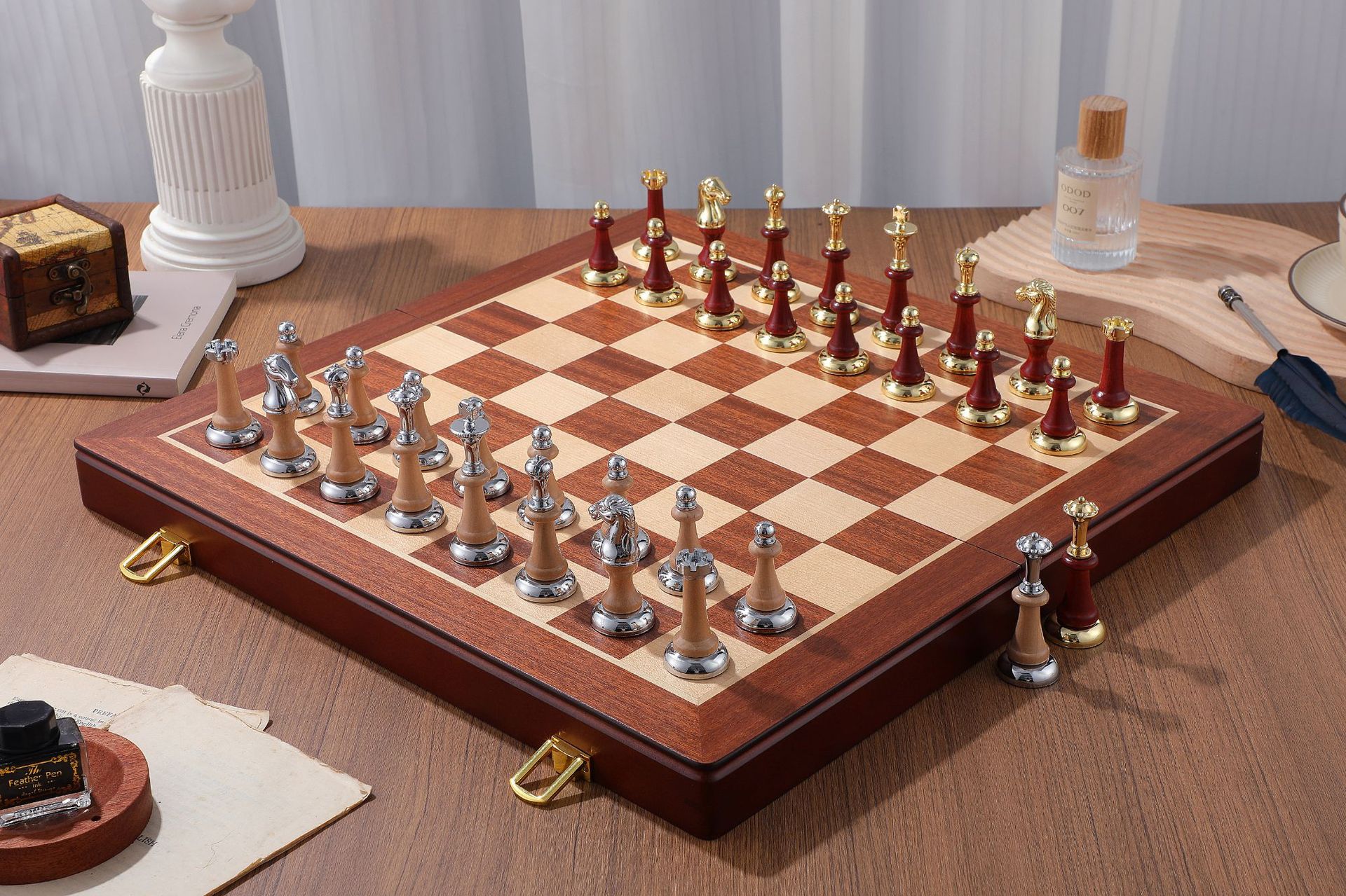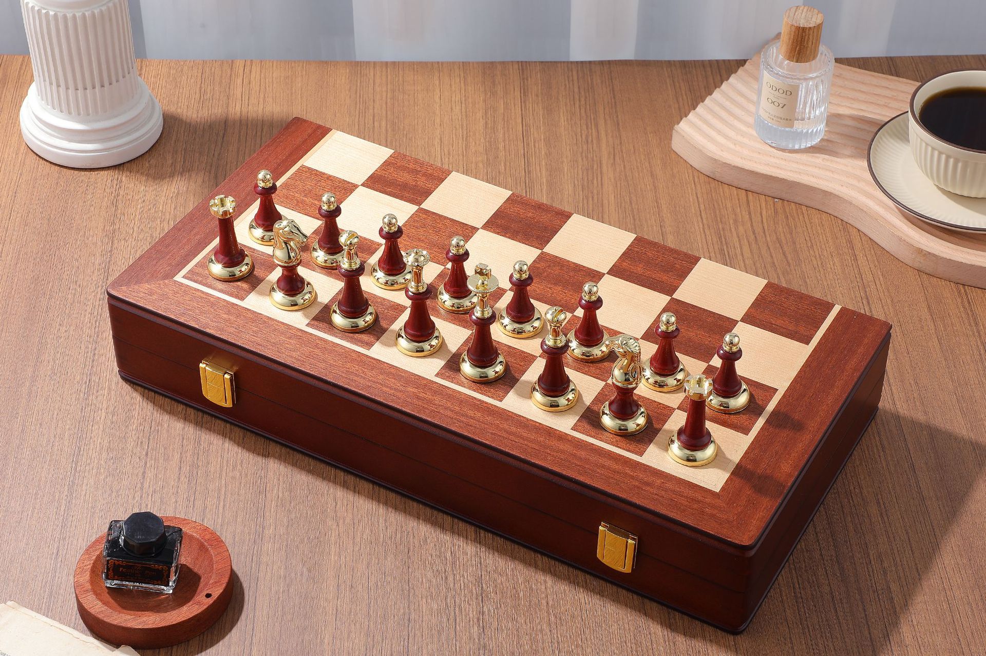 国境を越えた人気のチェスハイエンドギフトボックスセット無垢材折りたたみチェス盤金属チェスの駒チェスレトロヨーロッパ