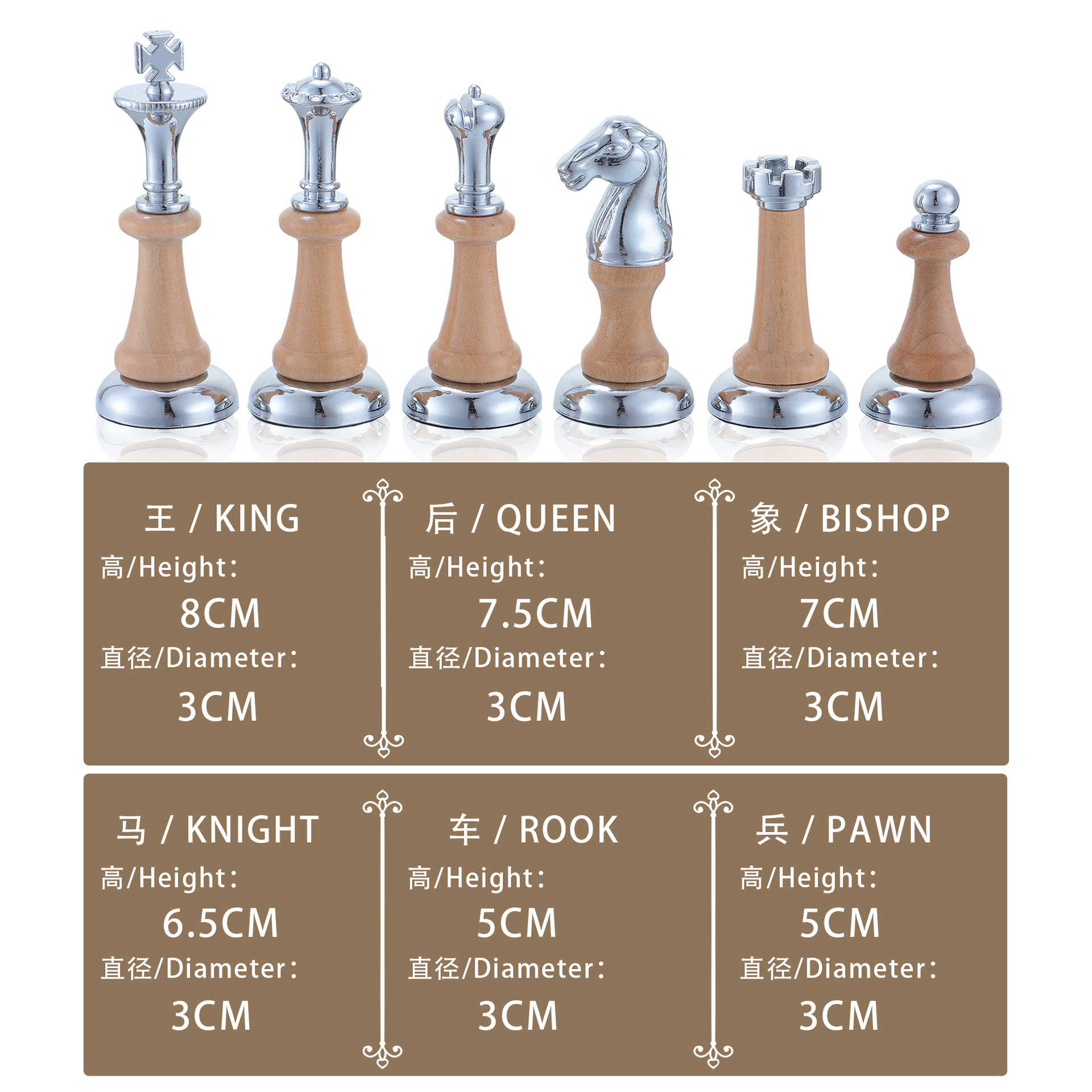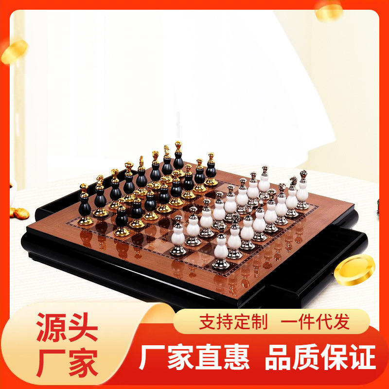 高級木製チェス盤練習セット、クリエイティブな亜鉛合金塗装駒、リビングルームゲーム、工芸品ギフト