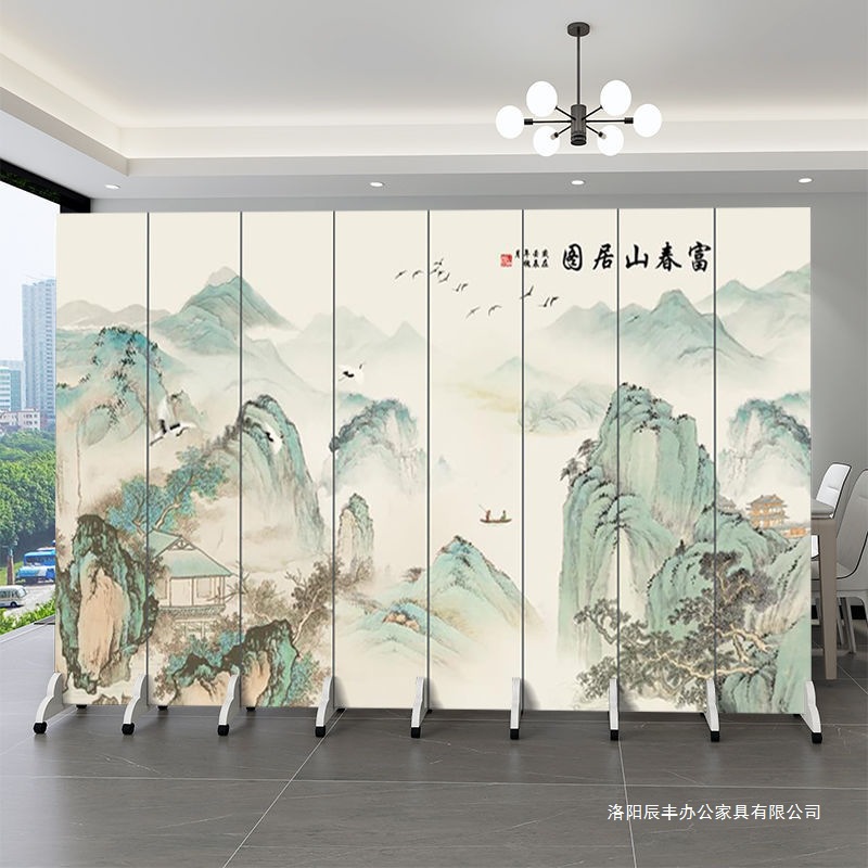 千里江山図パーティションスクリーンオフィス折りたたみ式ティールームホテル中国風風景画スクリーンパーティションリビングルーム
