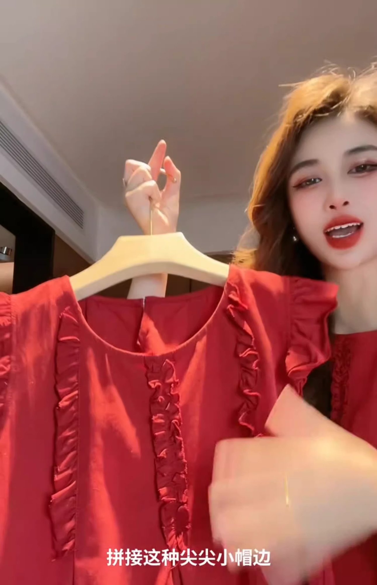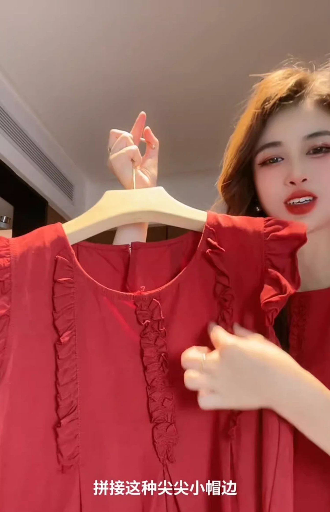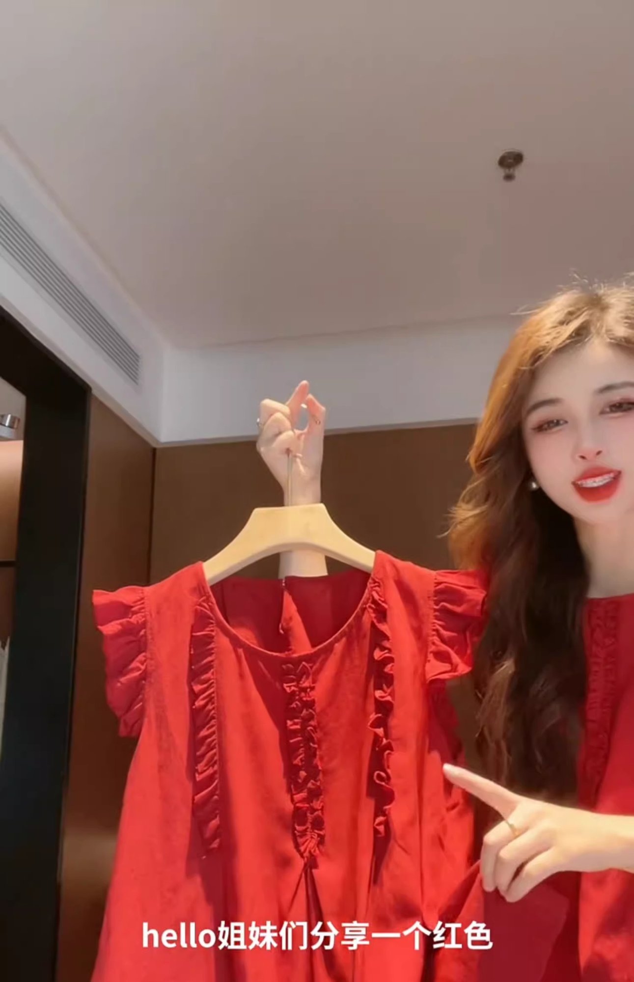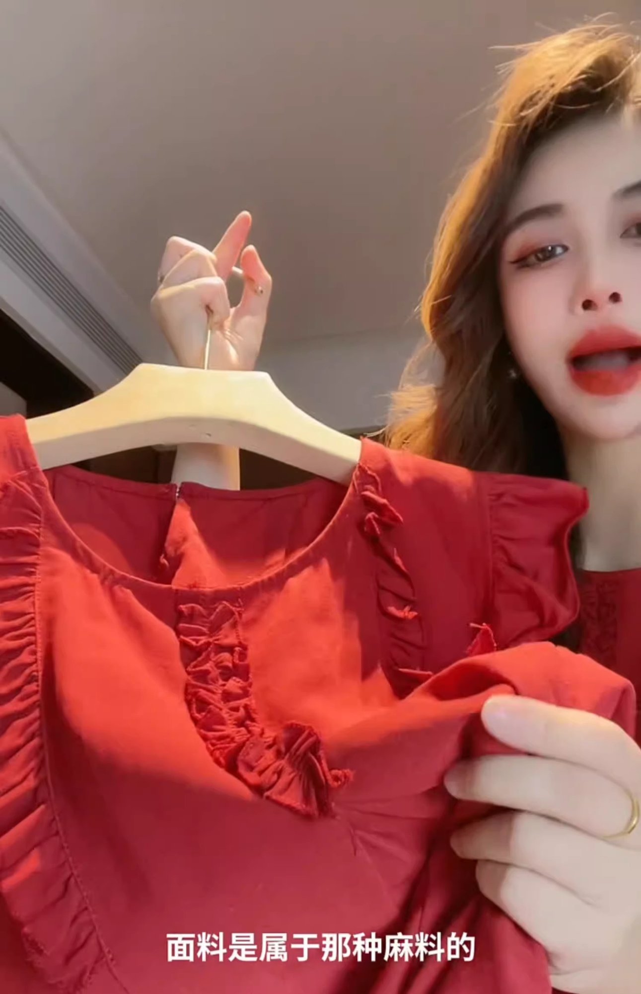 女性用の赤い袖のシャツ、夏の美しいベビードールシャツ、フレンチトップ