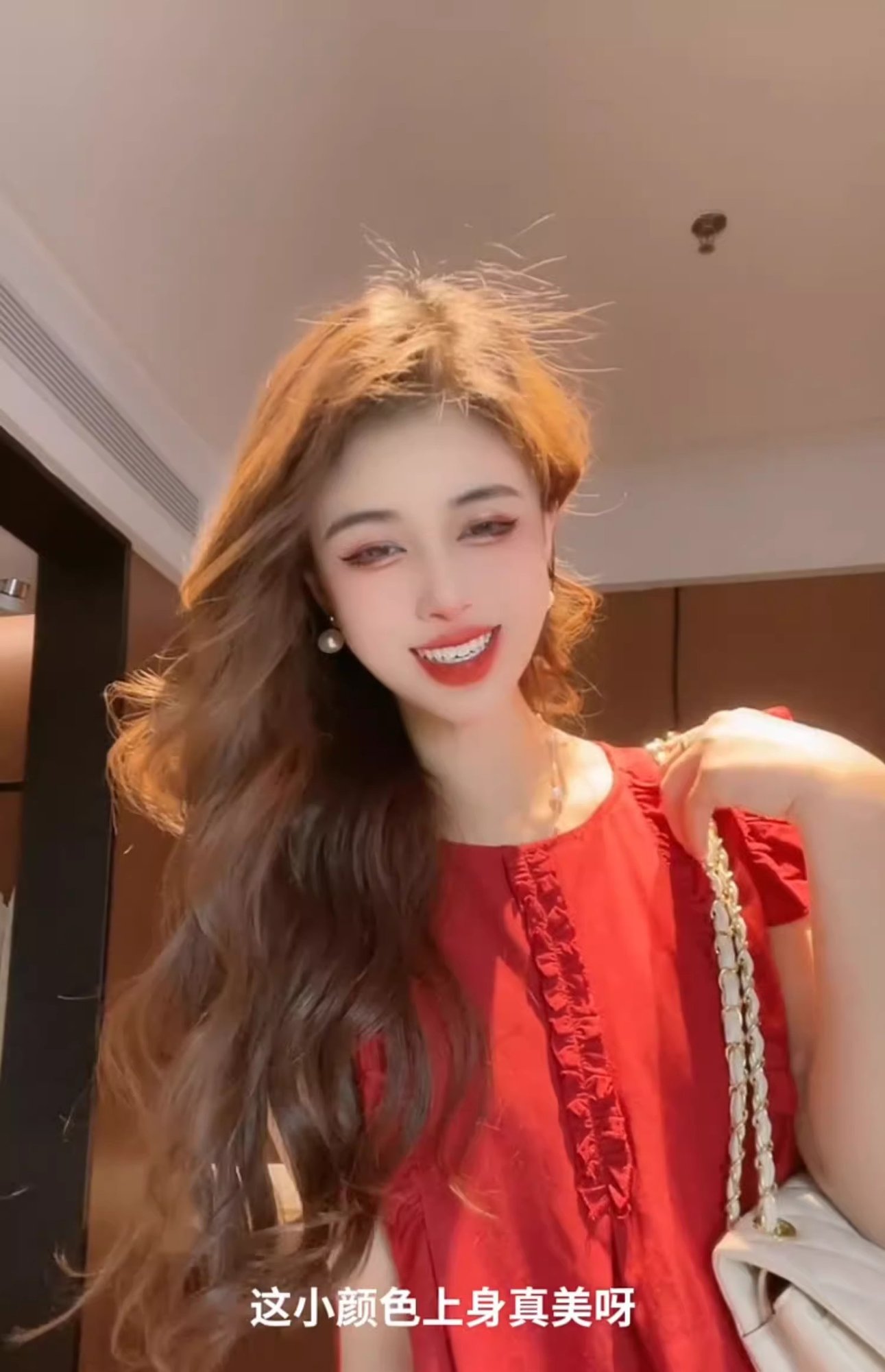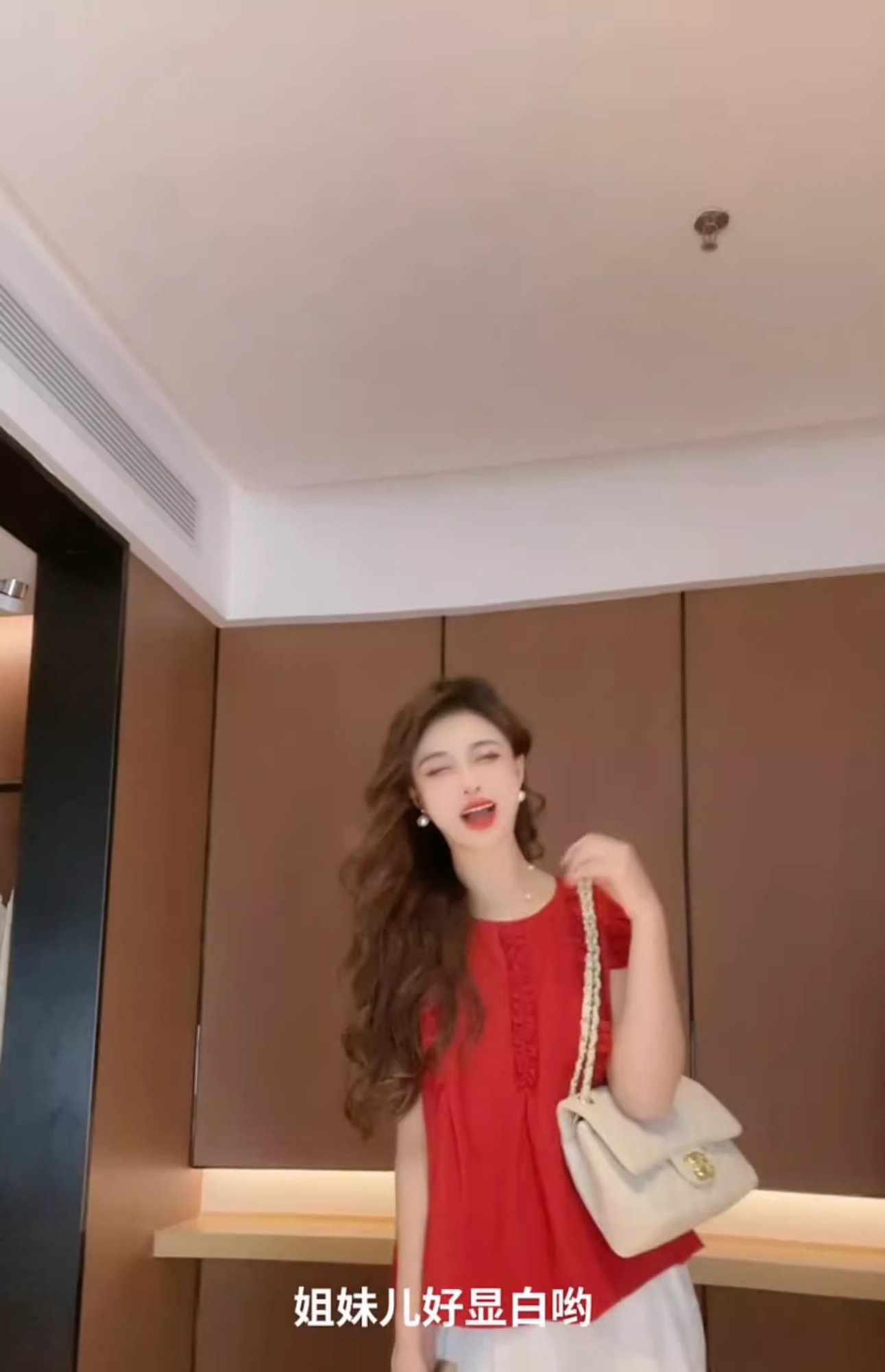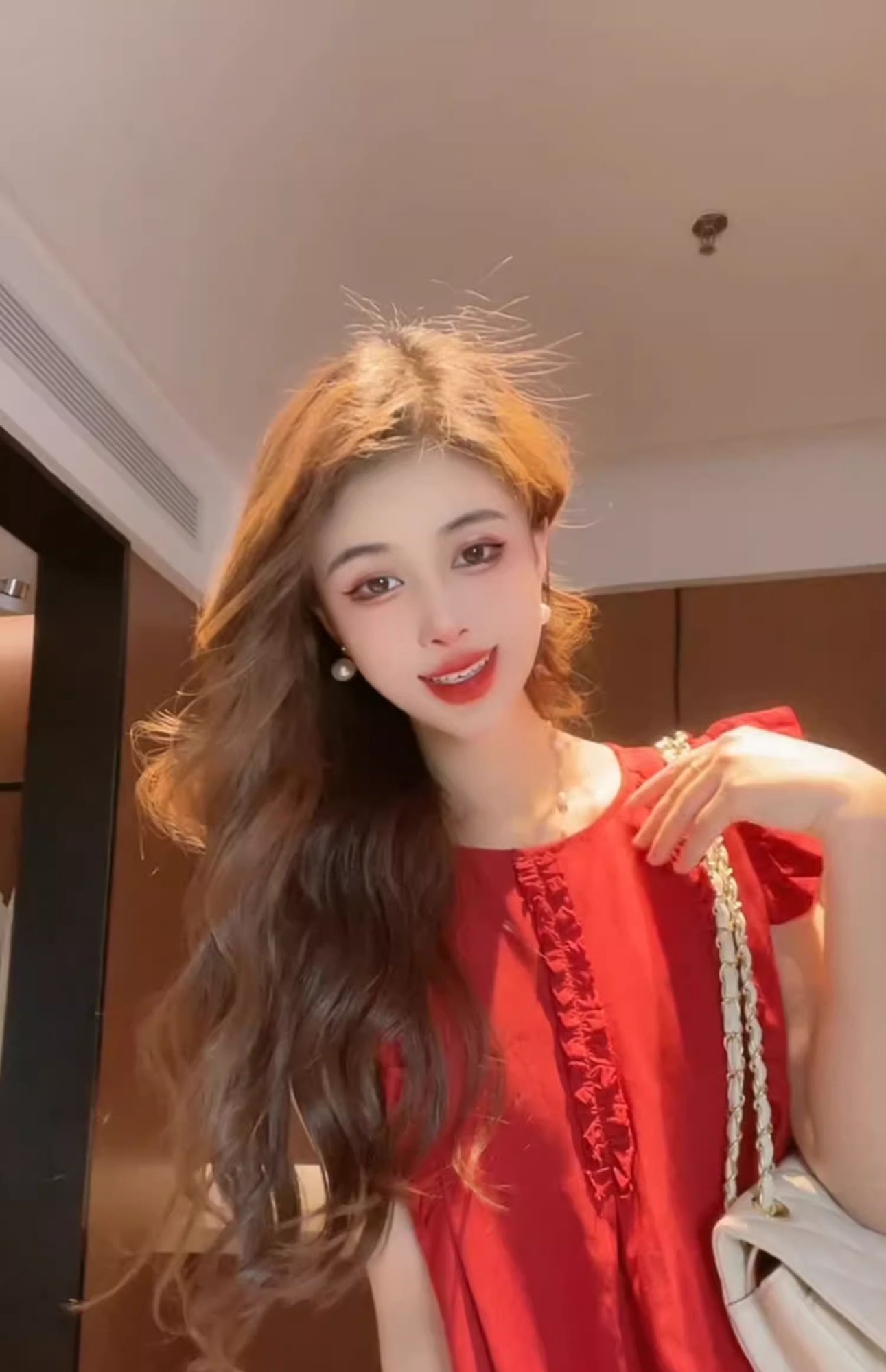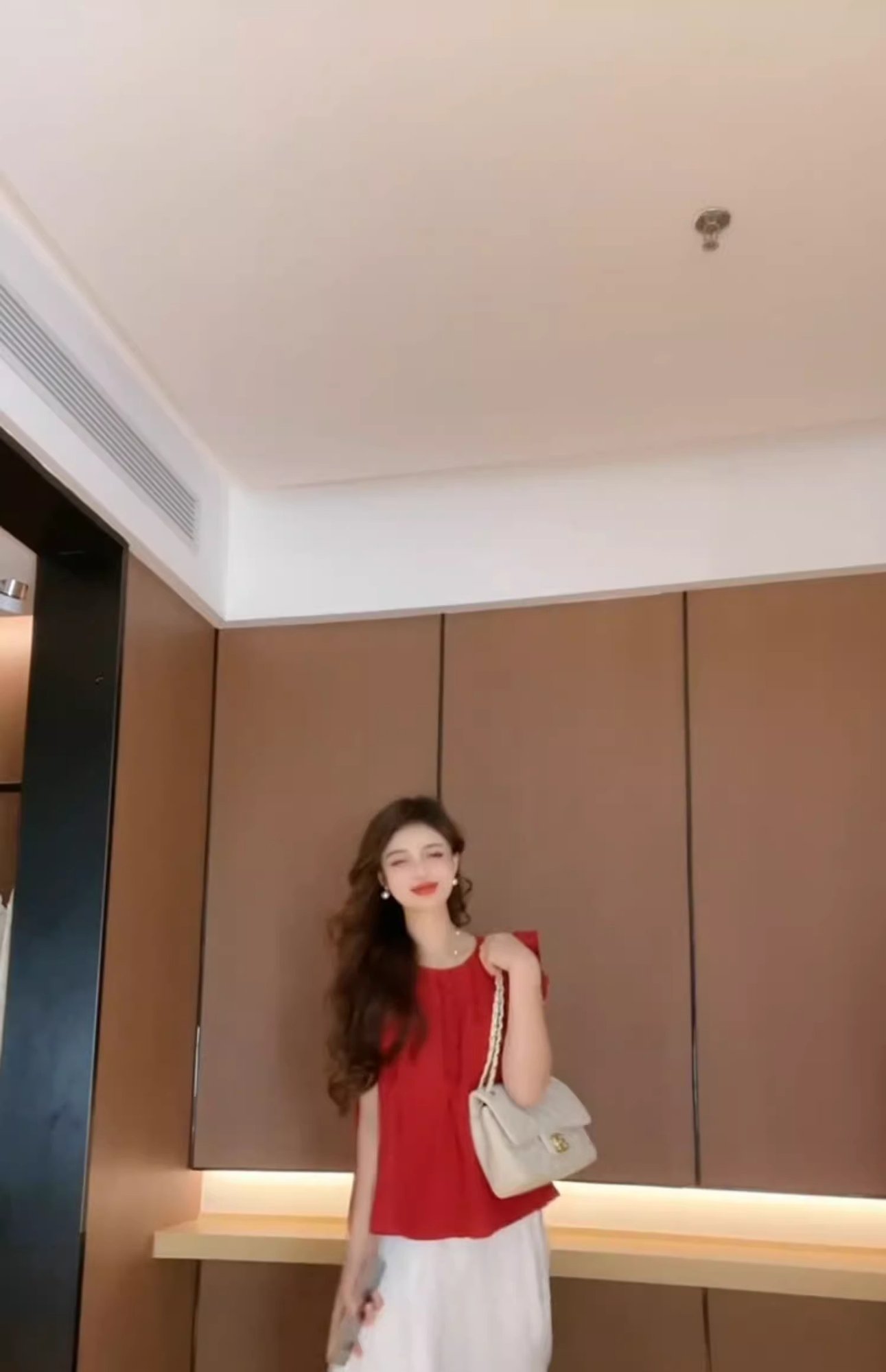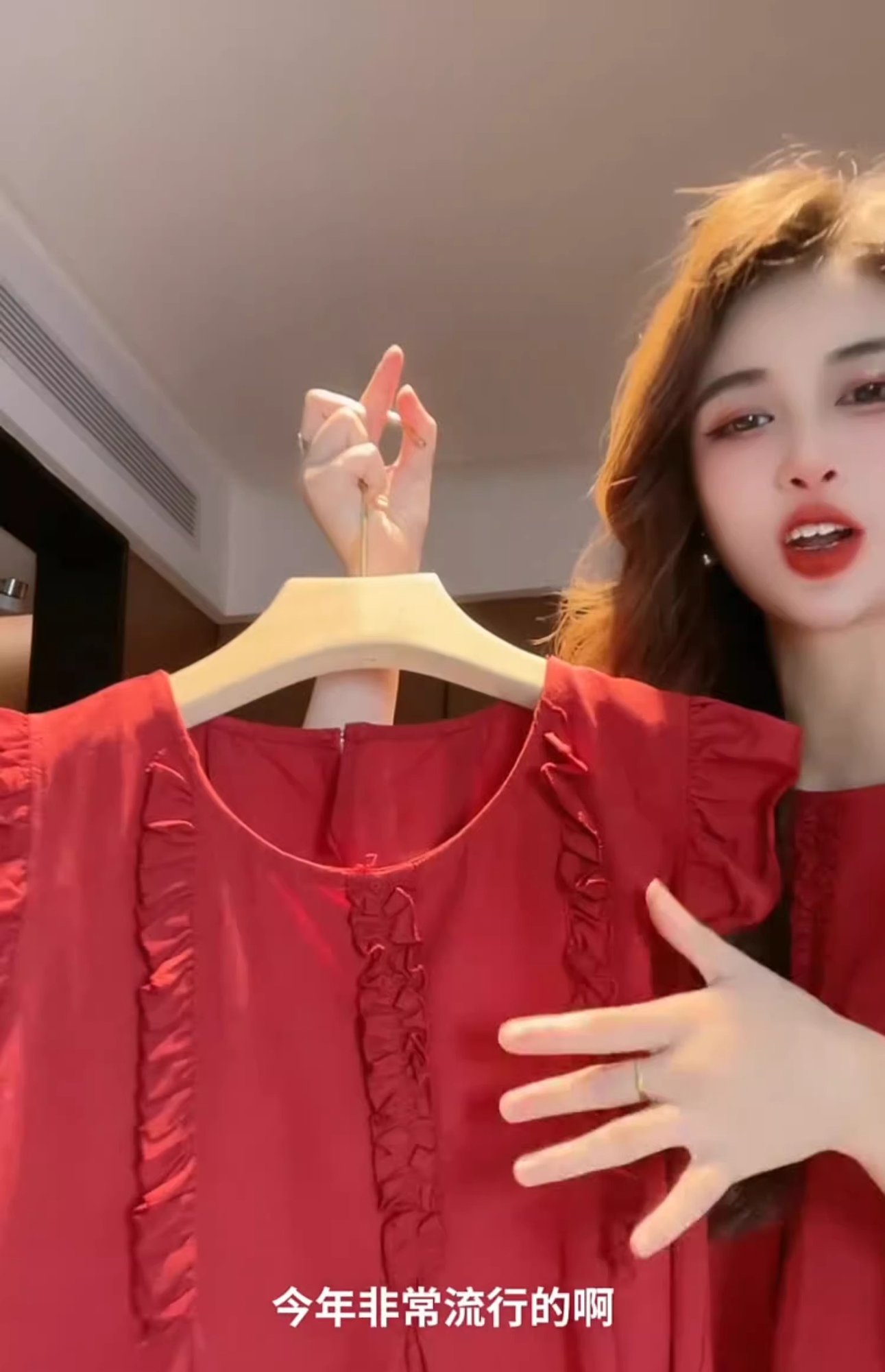 女性用の赤い袖のシャツ、夏の美しいベビードールシャツ、フレンチトップ