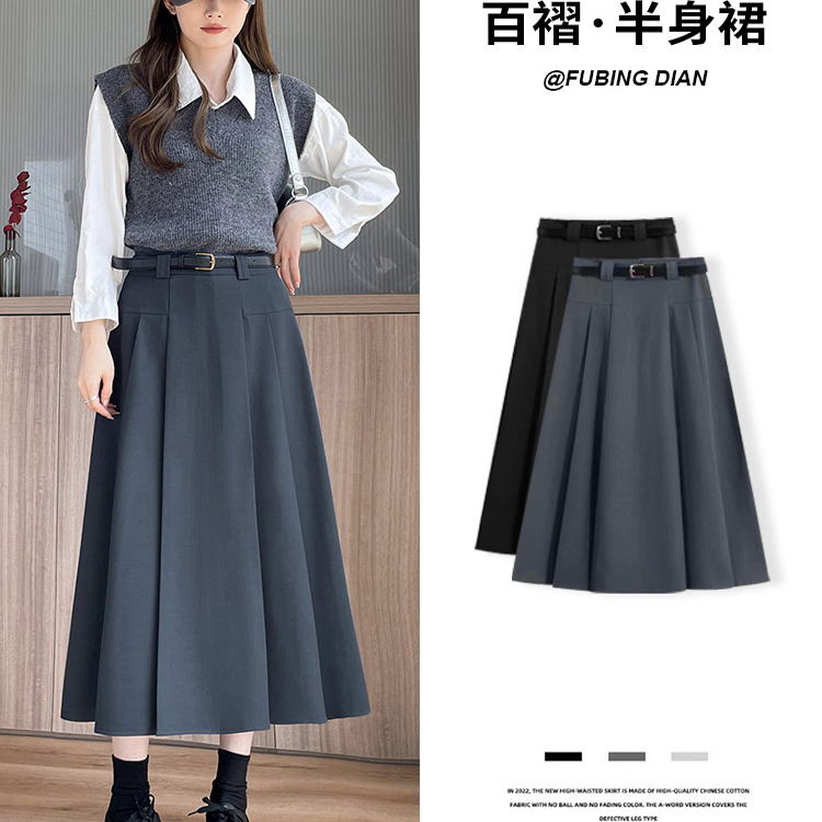グレースーツスカート女性のための春と夏 2025 新しい韓国スタイルハイウエストスリム A ラインミドル丈プリーツスカート