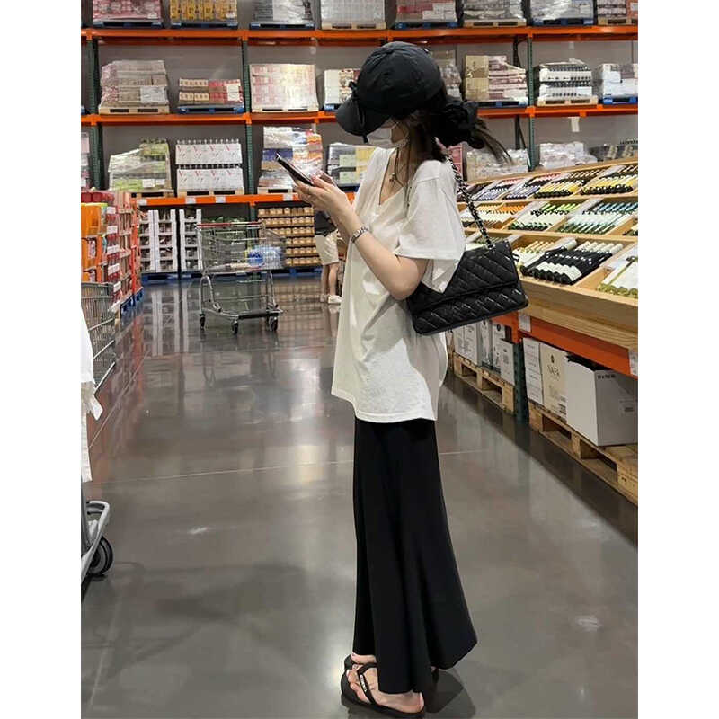 怠惰な風カジュアルな白いvネック半袖tシャツ女性夏の新しいデザイン感がゆるい