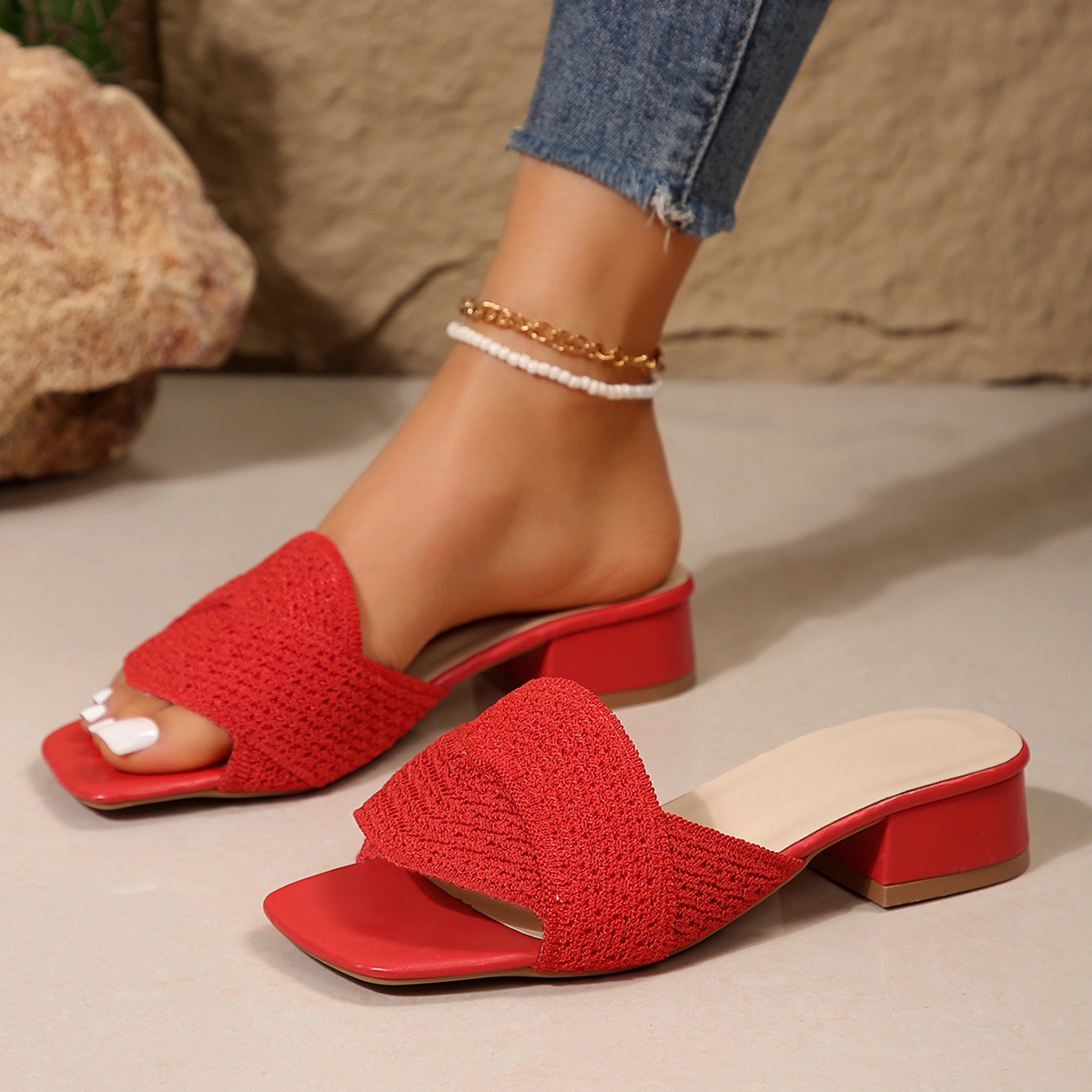 外贸大码外穿2025新款夏季时尚方头粗跟高跟鞋轻便凉拖鞋女欧美