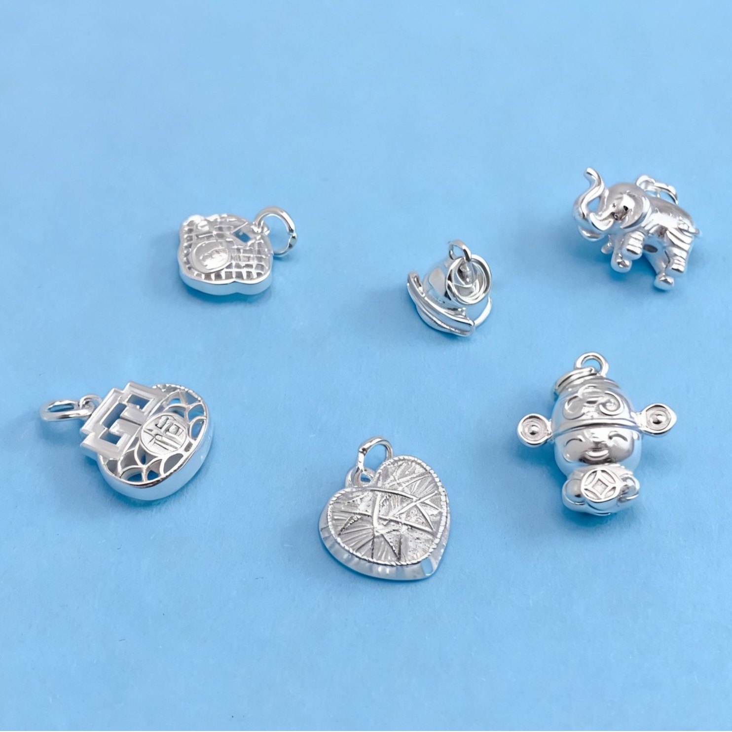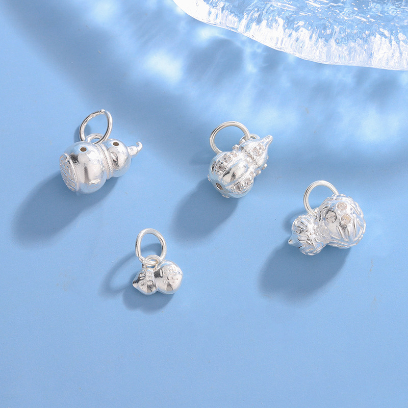 999足银配件铃铛吊坠福字葫芦DIY手工串珠手链六字真言配件挂件