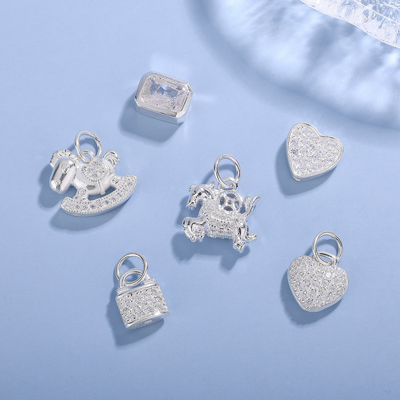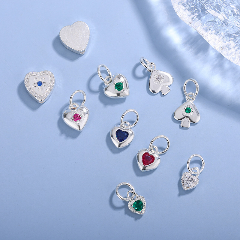 足银999彩色锆石DIY爱心纯银小吊坠手链项链耳环银饰品配件批发