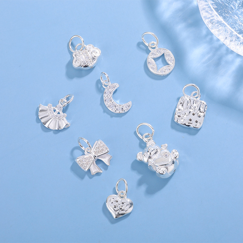 DIY 純銀 999 ジュエリーアクセサリー絶妙な小さな弓ピーチハートスター象嵌ペンダントジュエリーアクセサリー卸売