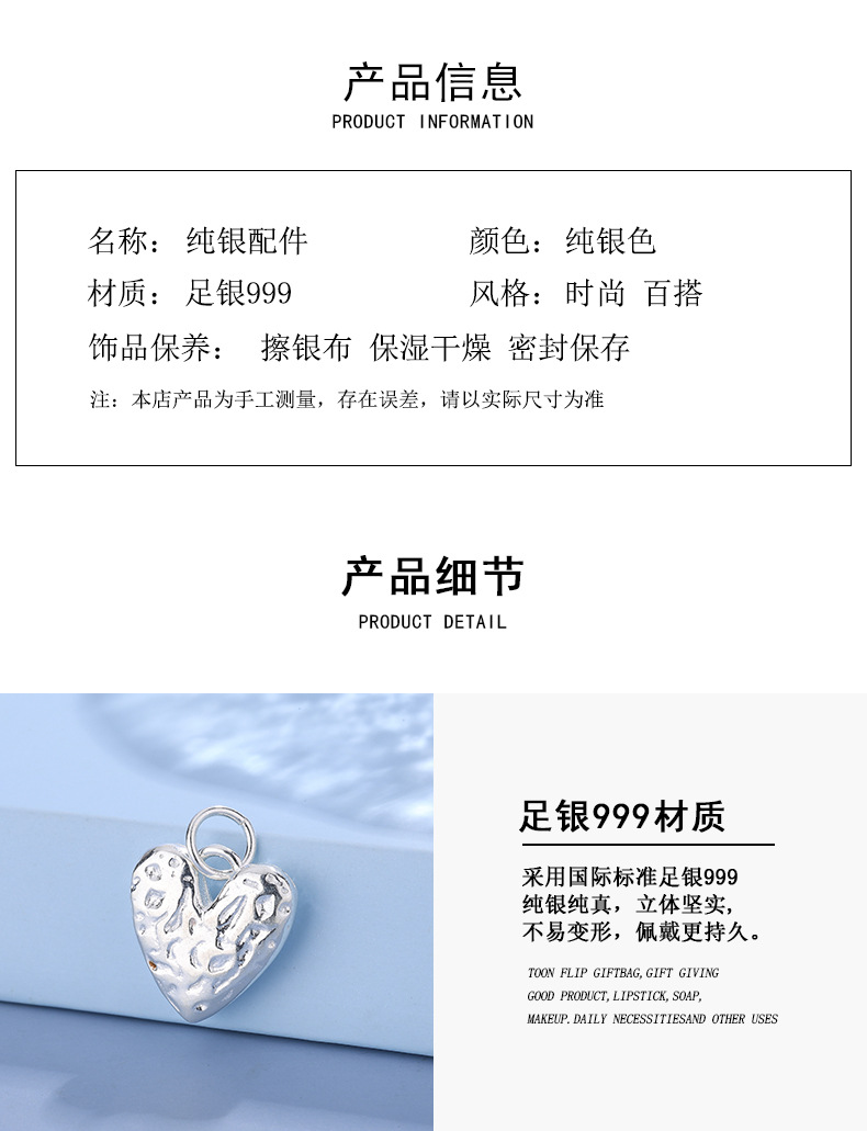 DIY 純銀 999 ペンダントアクセサリージュエリー素材スターリングシルバーラブアクセサリーシンプルなファッションライト高級隕石パターンブレスレット