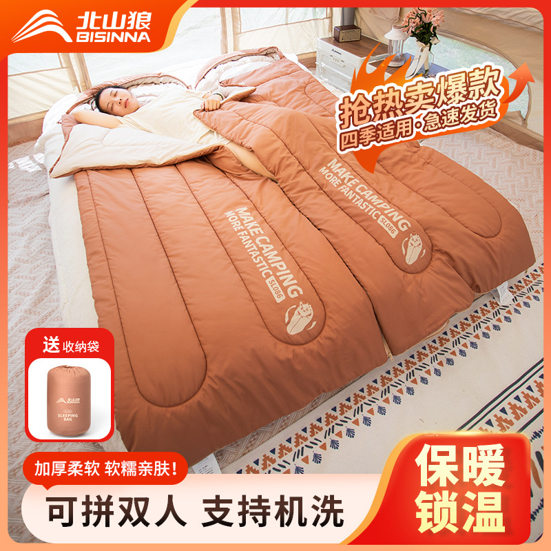 北山狼新作大人用寝袋 アウトドアキャンプ用 ダブル 冬用 厚手キルト 家庭用 秋冬用 保温寝袋