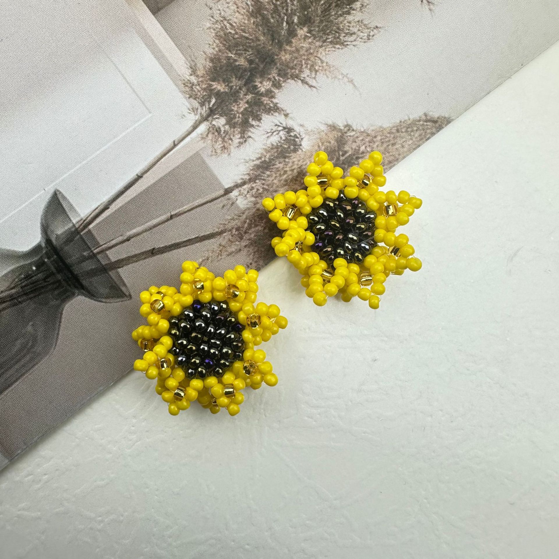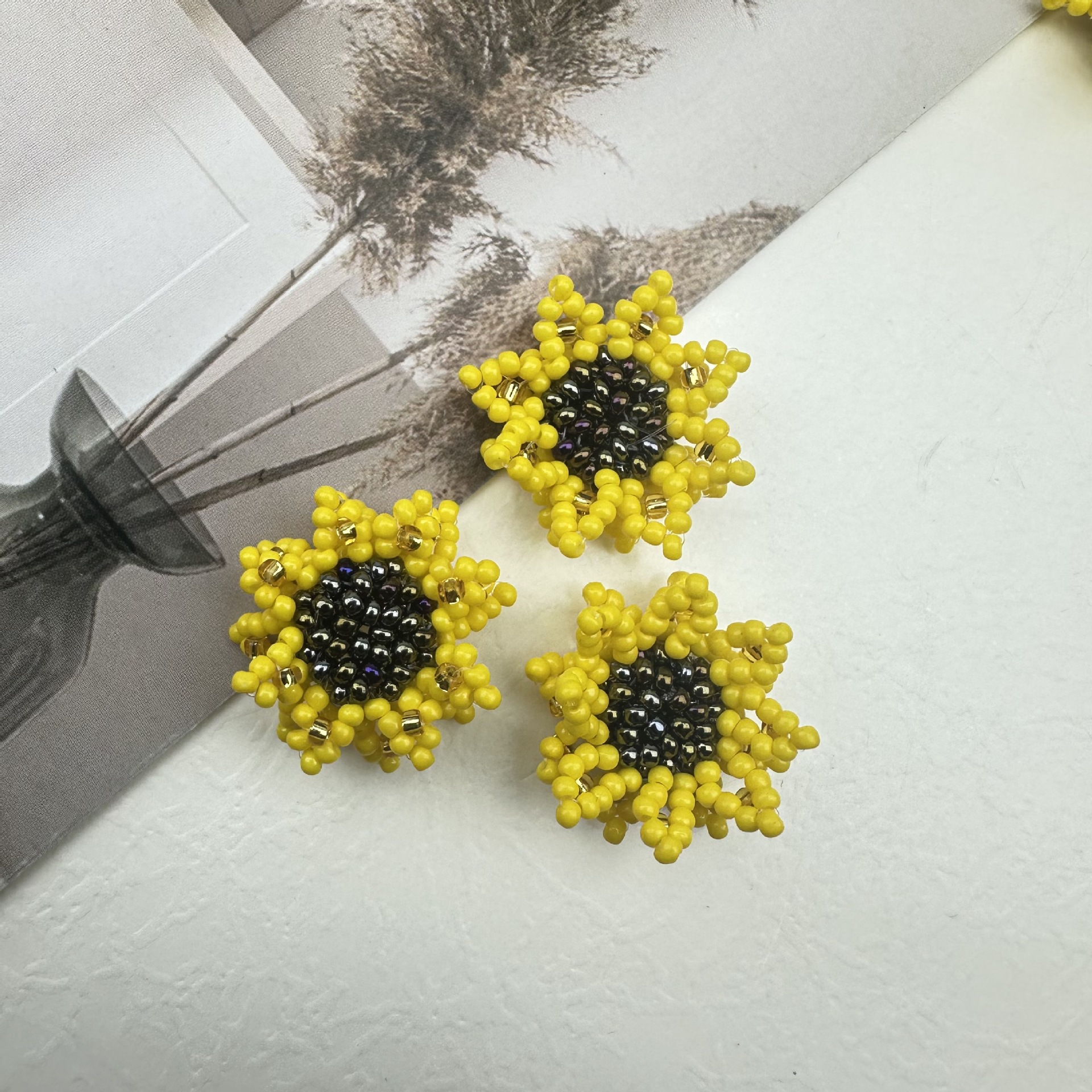 夏の活力ガーリーひまわり両面ライスビーズひまわり diy イヤリングイヤリング女性の携帯電話ネックレスアクセサリー