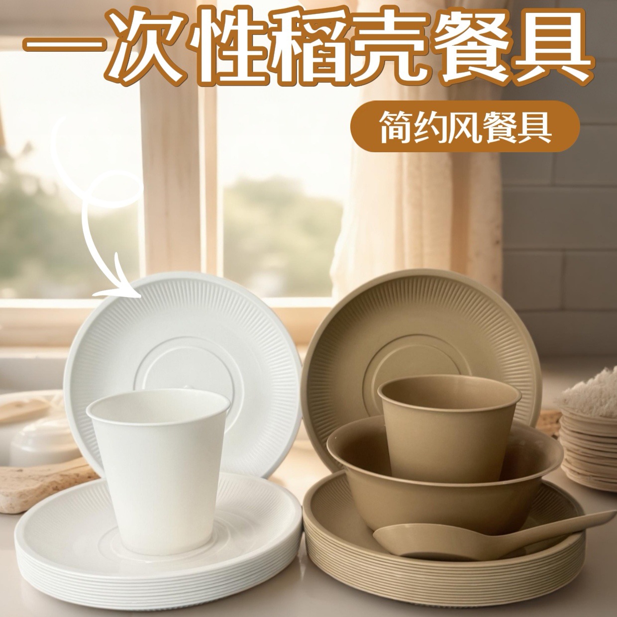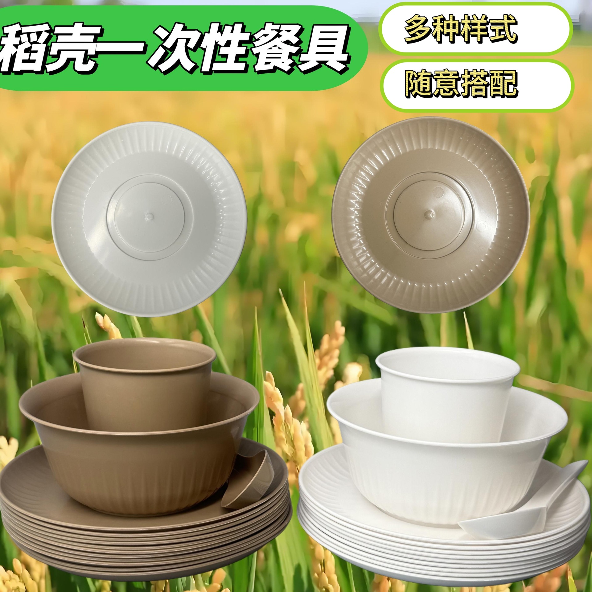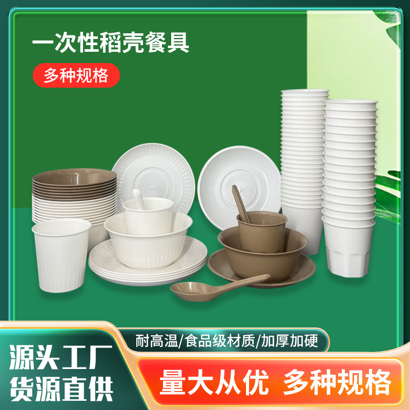 屋外ピクニック使い捨て籾殻ボウル、プレート、カップ、スプーン、パーティー分解性カップ、食器、カップセット