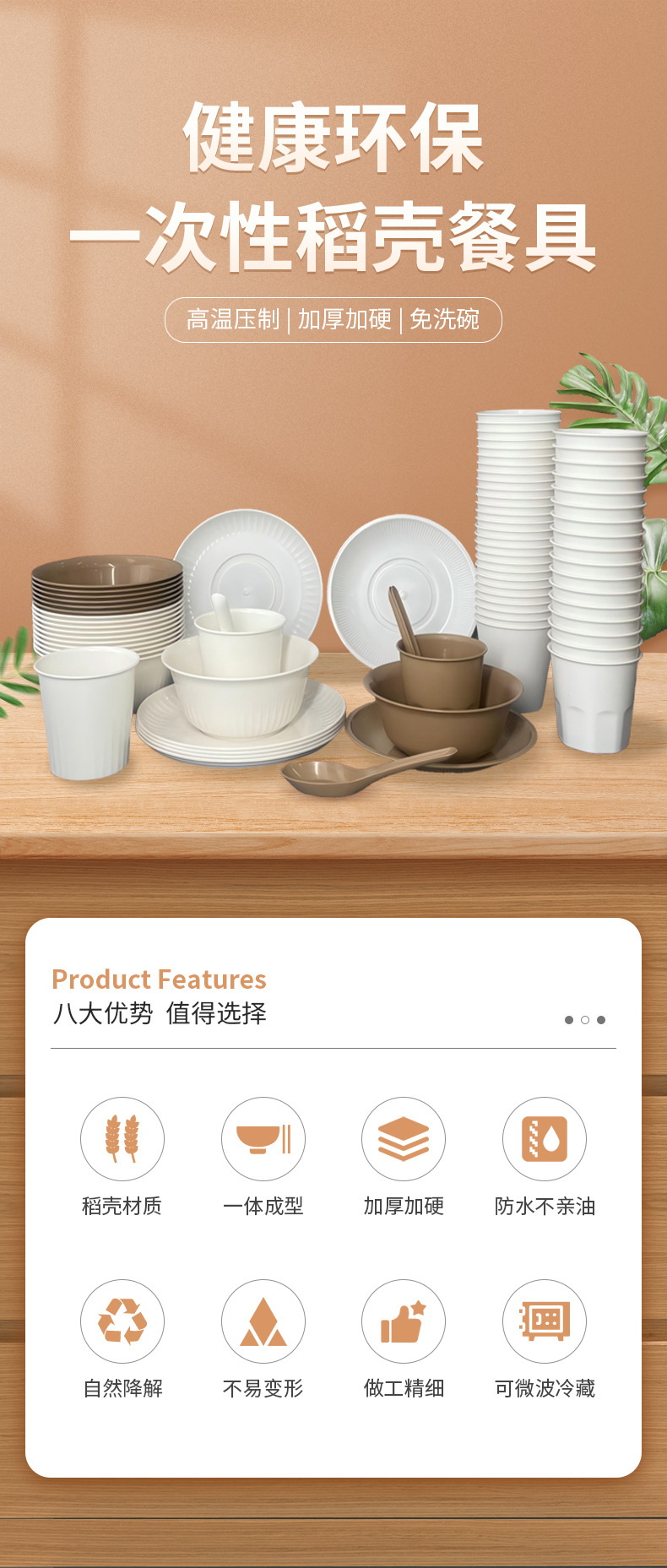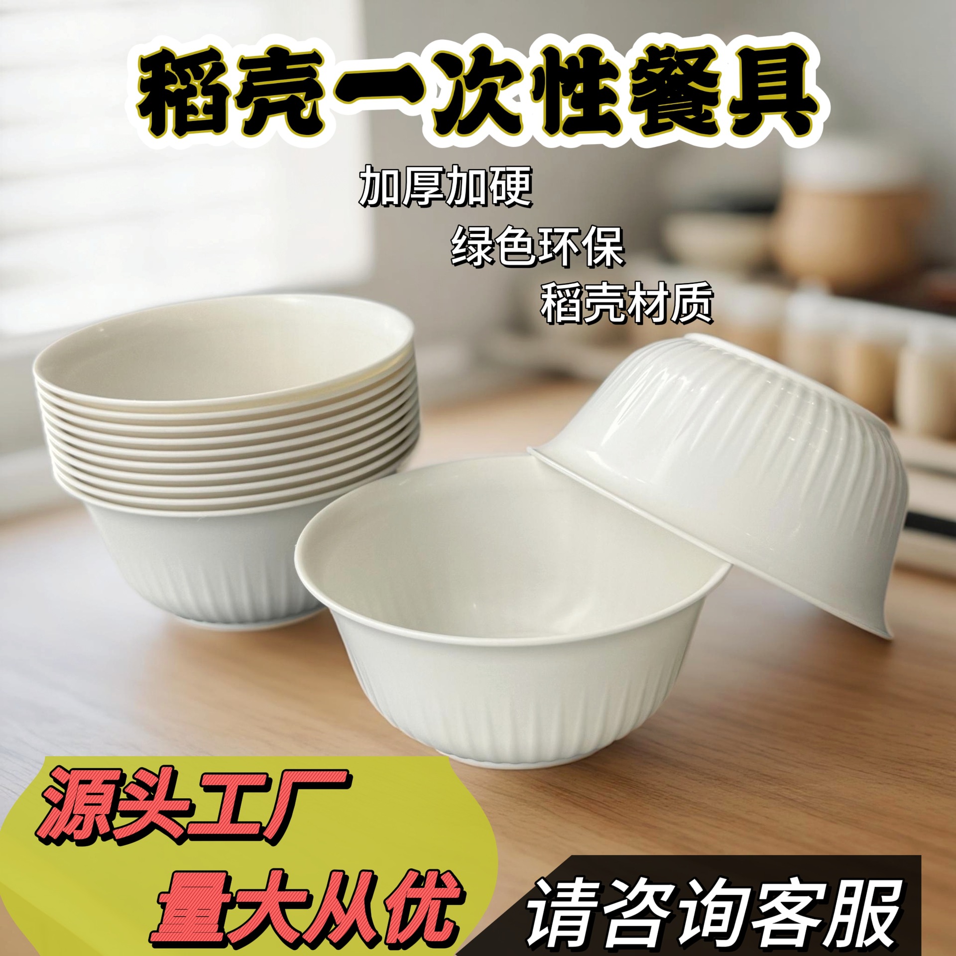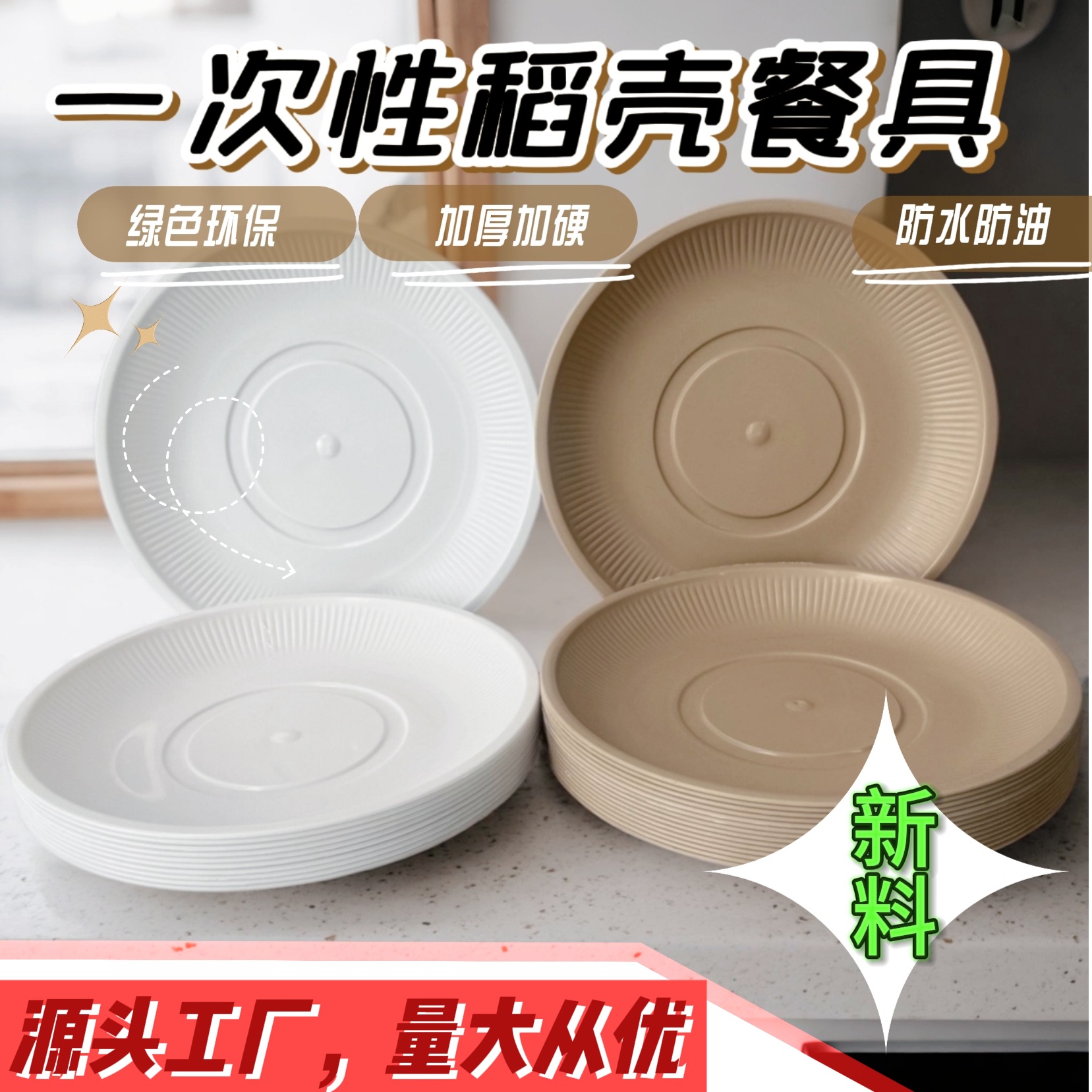 メーカー卸売使い捨て籾殻食器、厚く、高温耐性、分解性、家庭用レストラン宴会業務用食器