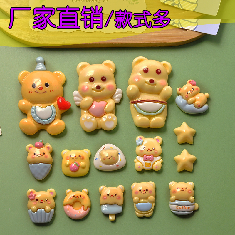 卡通亮面黄油小熊甜甜圈食玩diy奶油胶发夹手机壳冰箱贴树脂配件