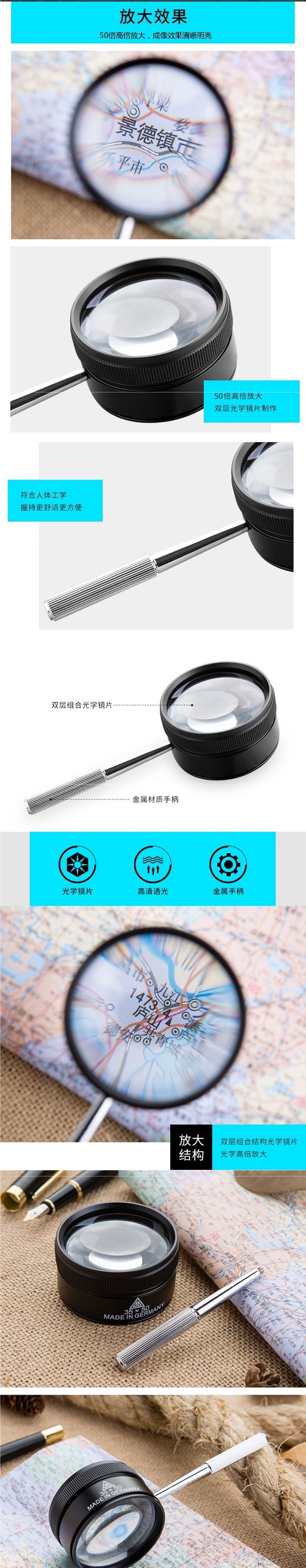 ドイツの職人技の高倍率拡大鏡、高精細50倍、中高年向けの手持ちポータブル読書、文具、修理、インスタントエンジョイメント