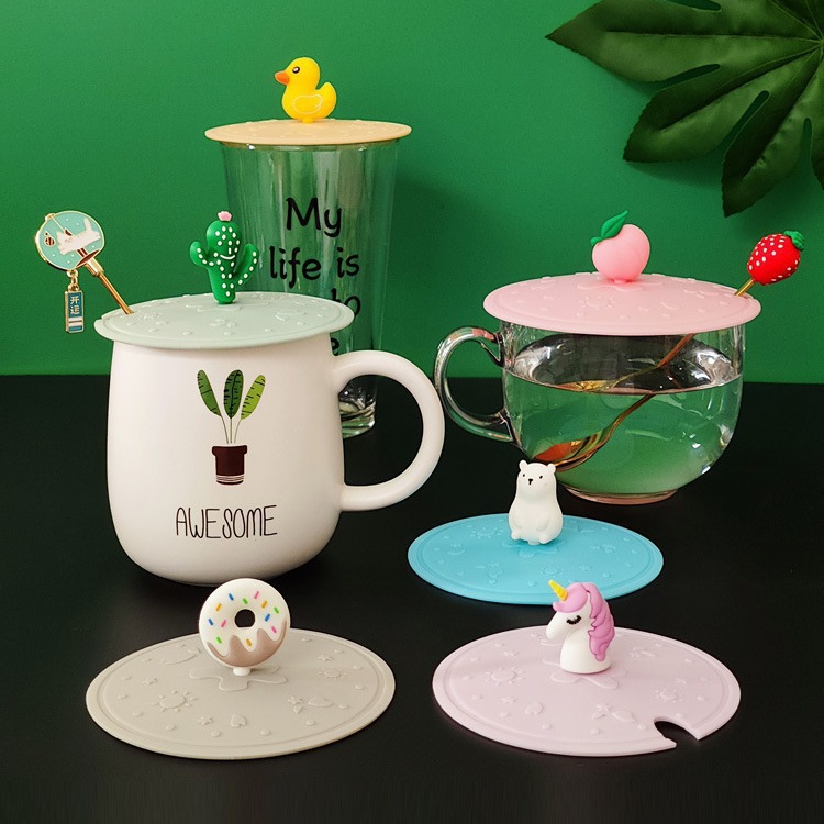 漫画シリコンカップ蓋食品グレードノッチカップユニバーサルラウンドユニバーサルカップ蓋ティーカップ蓋マグ蓋