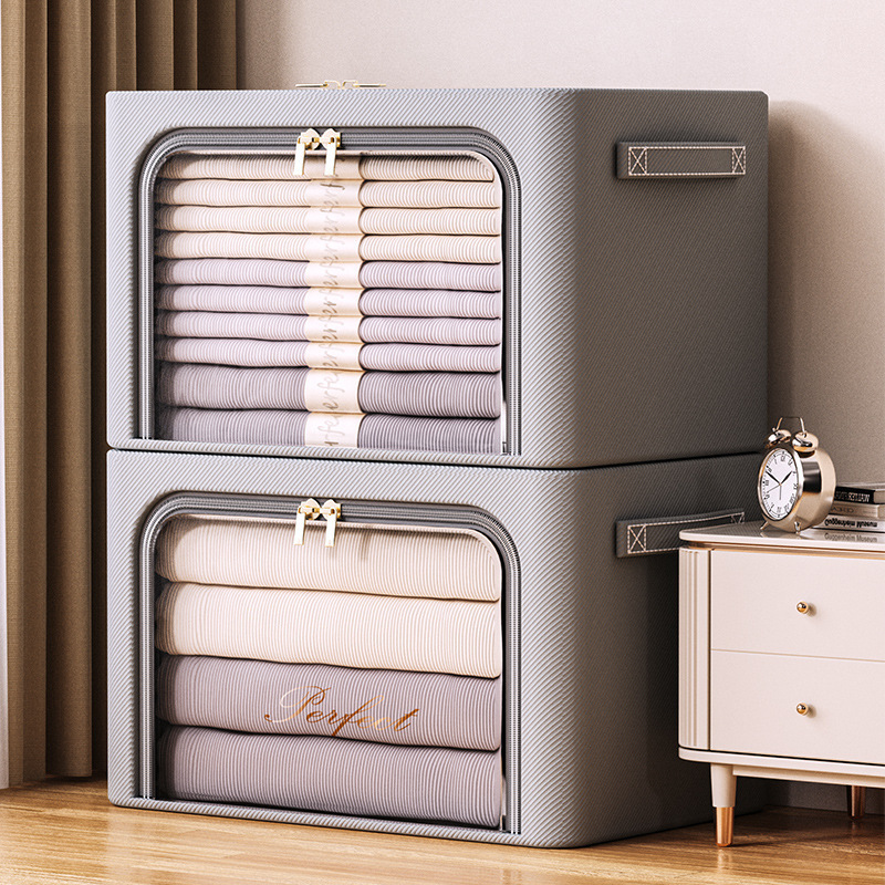 オックスフォード布無地スチールフレーム収納ボックス衣類防湿折りたたみ収納大容量家庭用収納ボックス