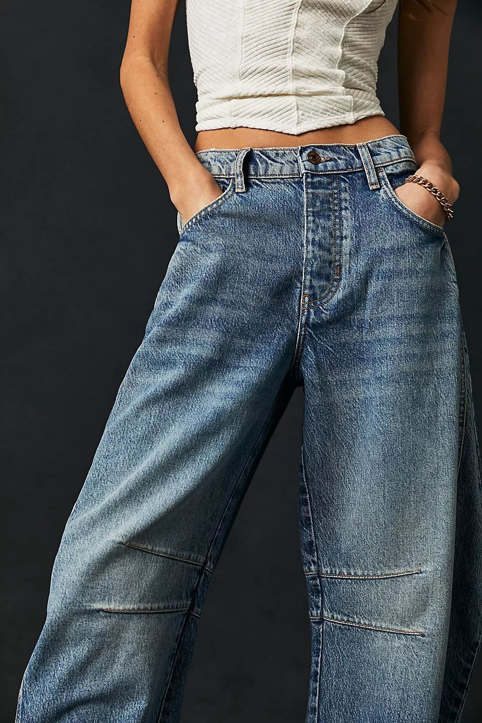 2024独立駅の国境を越えた欧米の人気広脚のゆったりした中低腰ジーンズ女性の水洗いカウボーイ